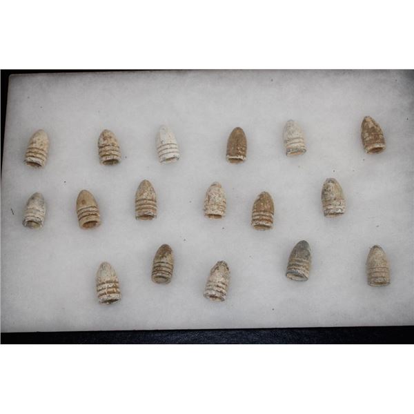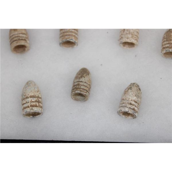 (17) Civil War Era "Minie Balls" Lead Bullets in a Display Case (ONE$). The Glass Lid display case measures 12" Wide x 8.5" Tall. The accuracy of Minie Balls made the Civil War deadlier than any conflict in American history, before or since. The majority of soldiers killed in battle lost their lives to these bullets. Head and stomach wounds caused by them are almost always fatal. COLLECTIBLE CIVIL WAR MILITARIA