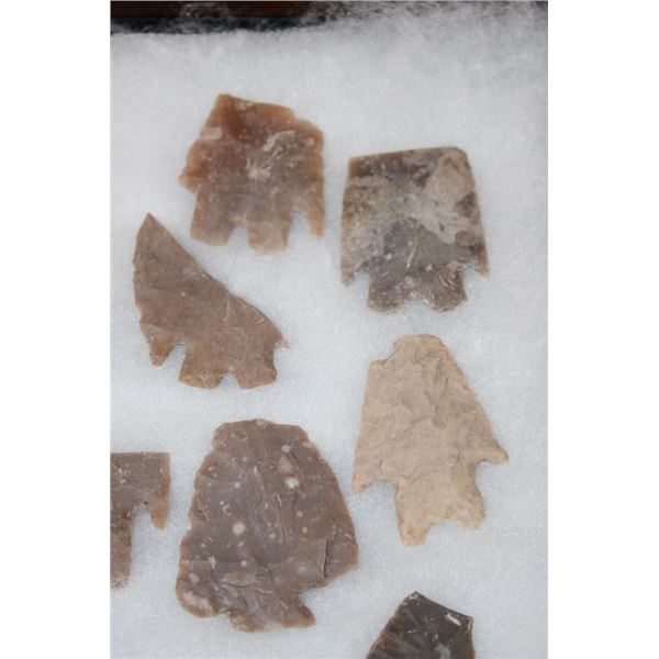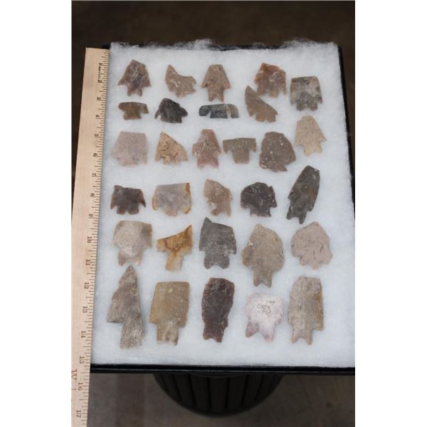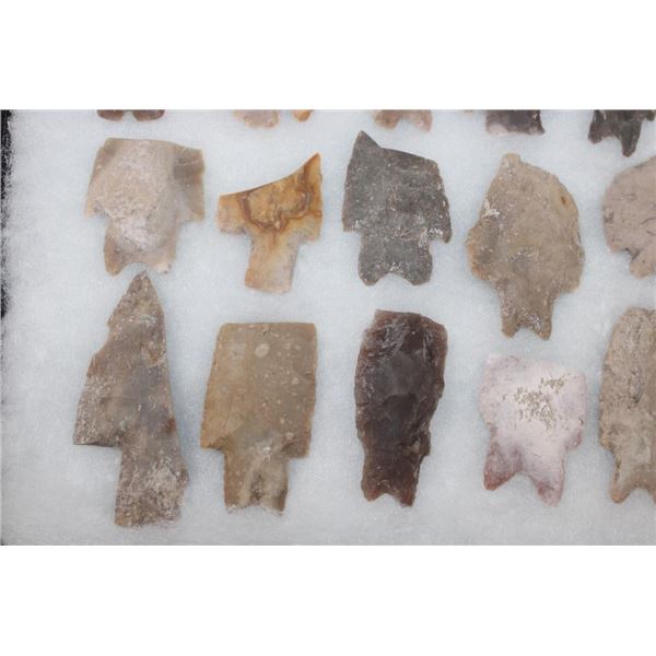 30 South Texas Heartbreaker ARROWHEAD Surface Finds. The Arrowheads measure 1" to 3.5" Long. They have been displayed in a Case with Glass that measures 15.5" Long x 12" Wide.?(ONE$) ARROWHEADS