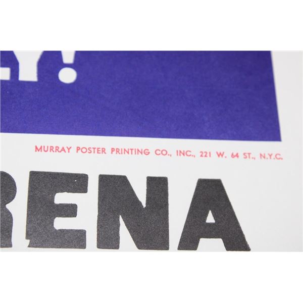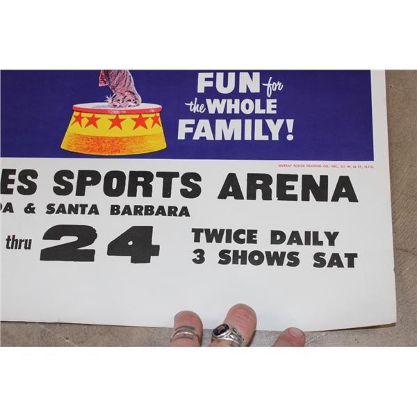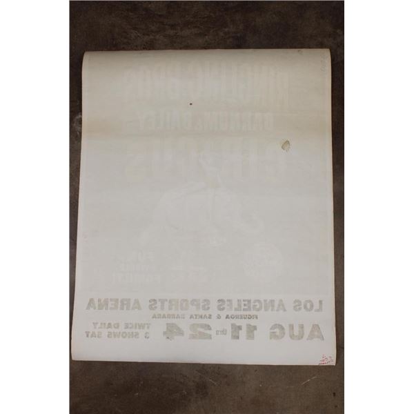 Original "Ringling Brothers Barnum and Bailey Circus" Advertisement Lithograph from 1943. It has stunning colors and imagery of a performer on an Elephant. It measures 28" Tall x 22.5" Wide. It is in Very Good Condition for its age. No Frame. COLLECTIBLE ADVERTISEMENTS AND POSTERS
