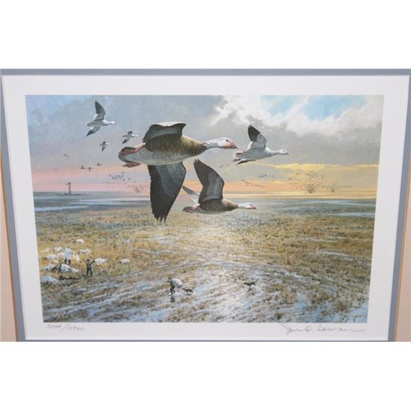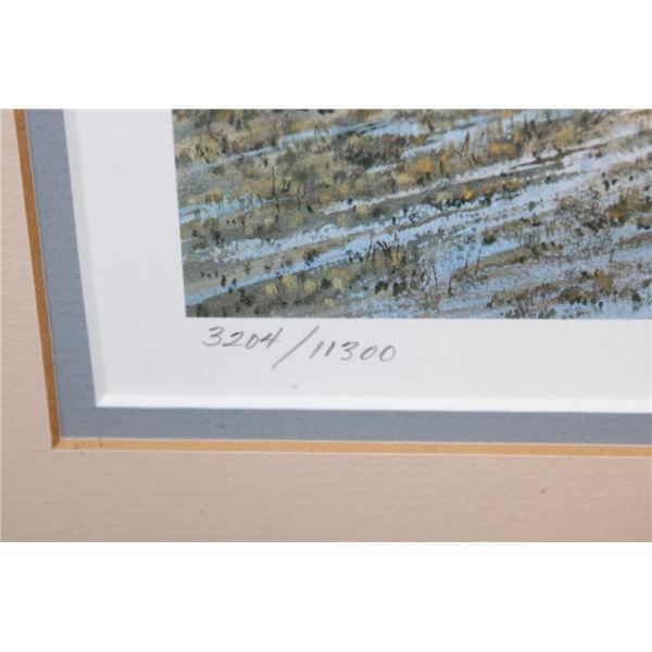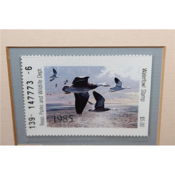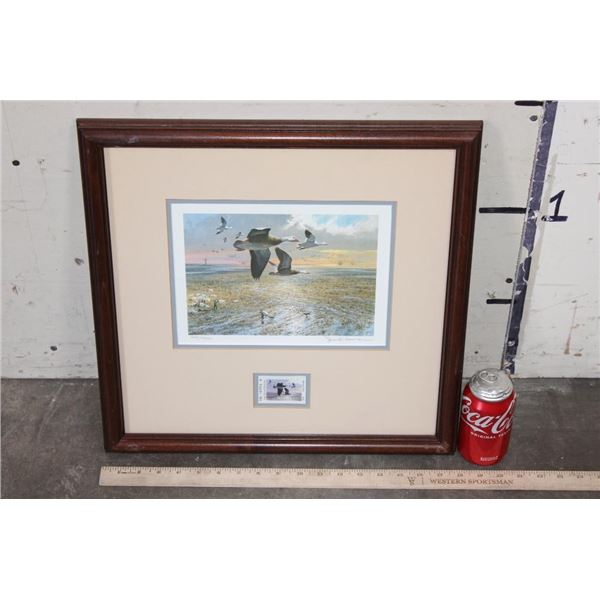 Limited Edition 1985 Waterfowl Stamp and Print. It has been signed in pencil and numbered "#3204/11300" by "John P. Cowan". It is displayed in a nice Wood and Glass Frame that measures 18" Long x 18" Wide. One of America's premiere wildlife artists, Cowan was a graduate of Pratt Institute in Brooklyn, New York. His paintings have appeared as cover art and illustrations in such magazines as Fortune, Life, Look, Esquire, Sports Afield, Outdoor Life and other national publications. COLLECTIBLE WILDLIFE ART AND COLLECTIBLE STAMPS