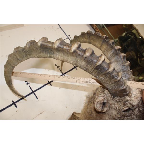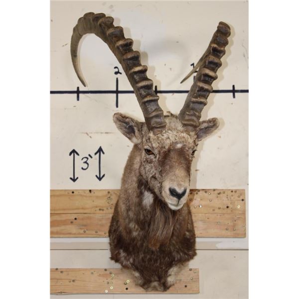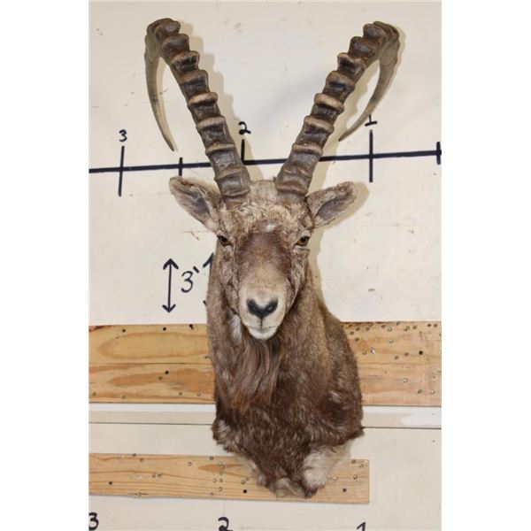 Very Nice and Big SIBERIAN IBEX Shoulder Mount. The Left Horn measures 39" Long and the Right Horn measures 38.75" Long. This is a Newer mount in Very Good Condition. TAXIDERMY