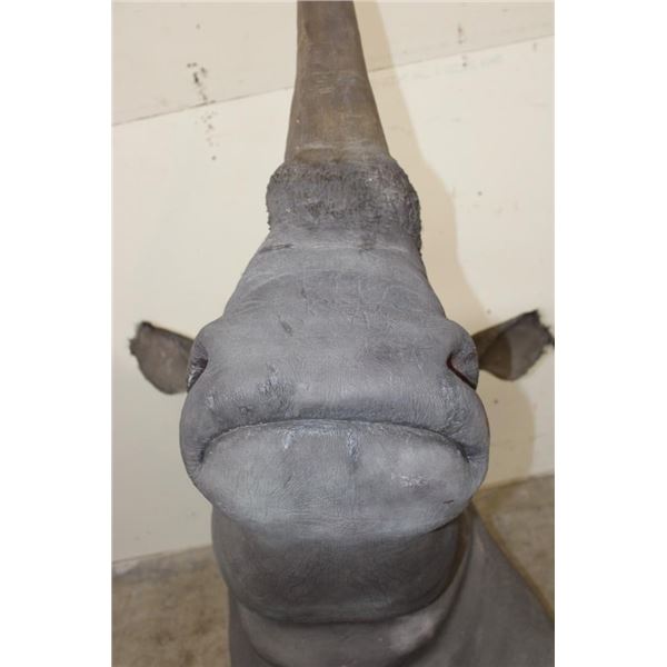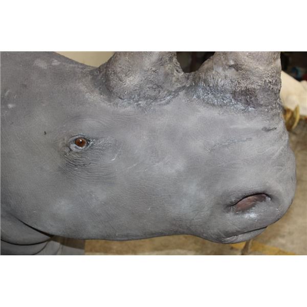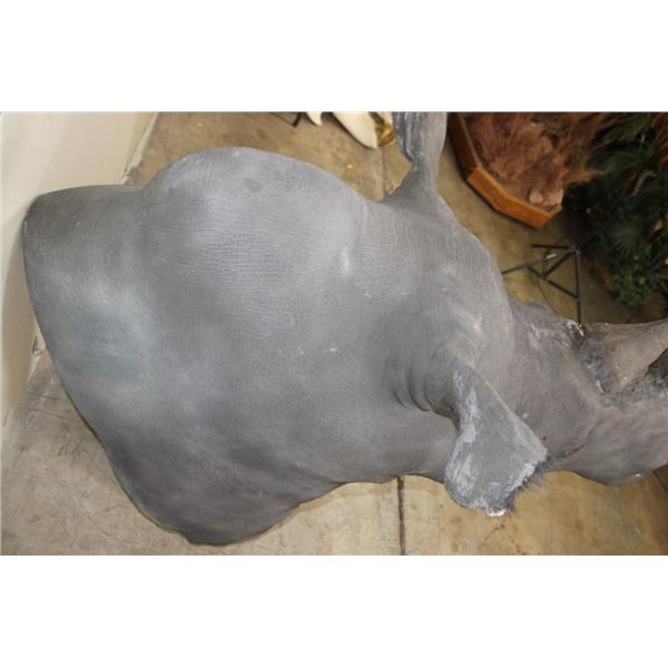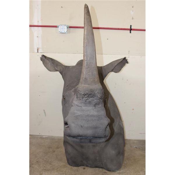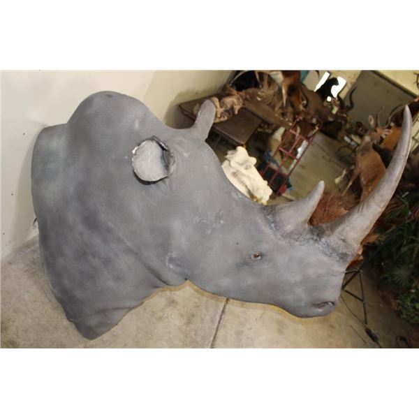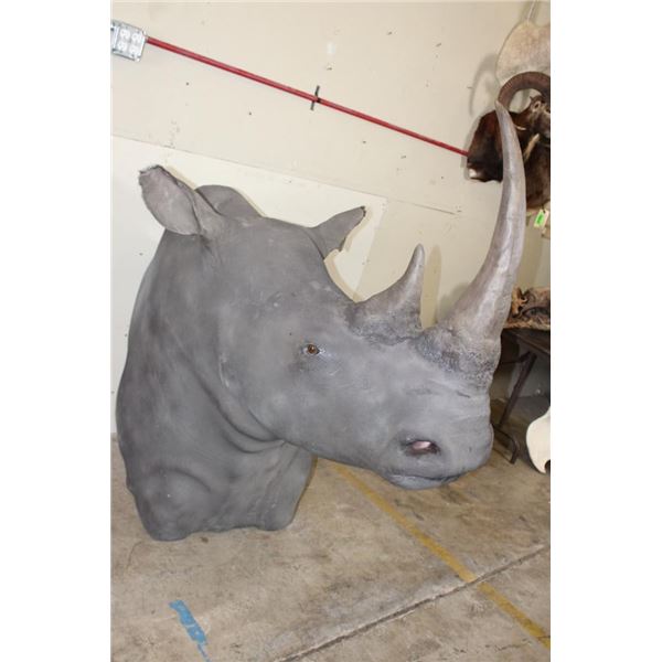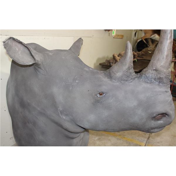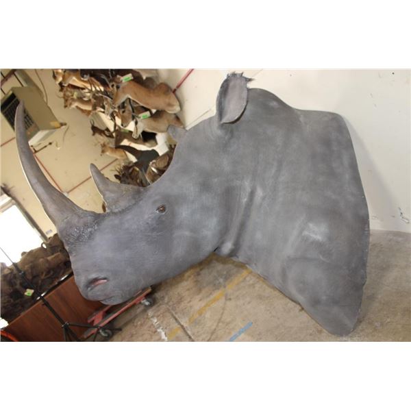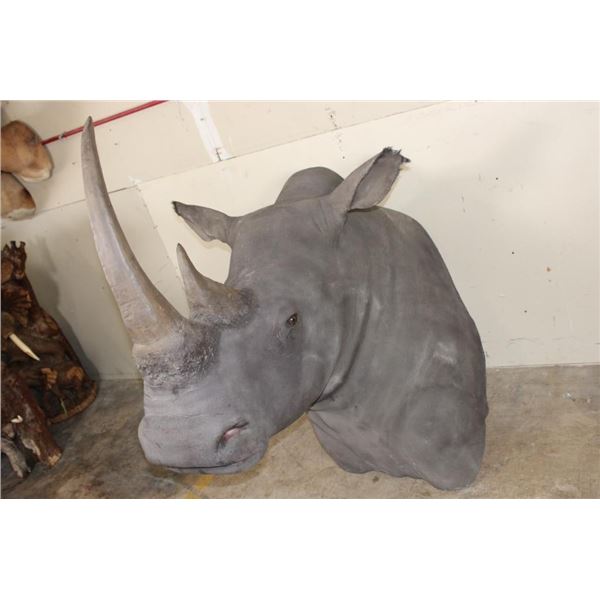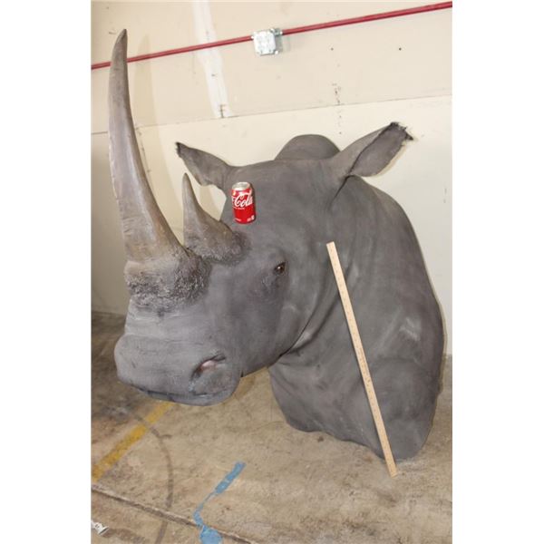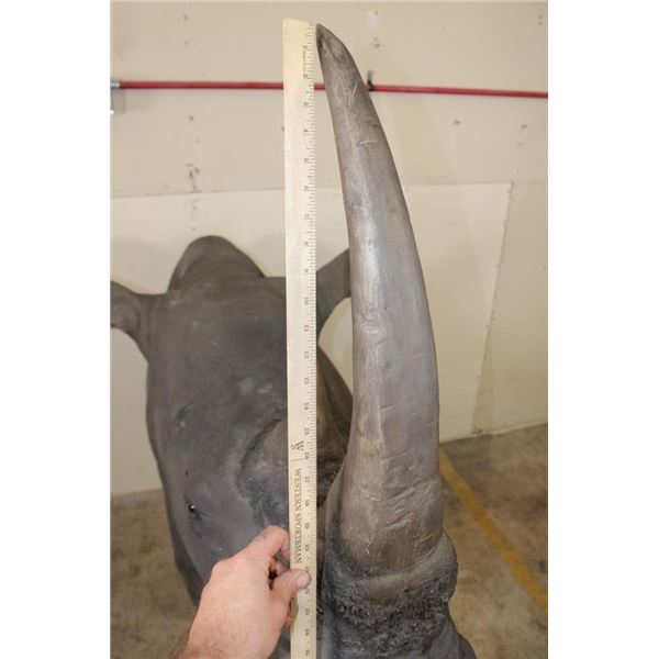 *TEXAS RESIDENTS ONLY*!!! *Real Skin* RHINOCEROS Shoulder Mount with Huge Reproduction Horns. The Front Horn measures 27.25" Long. The Total Mount measures 51" Tall x 29" Wide x 64" Depth (from the wall). TAXIDERMY