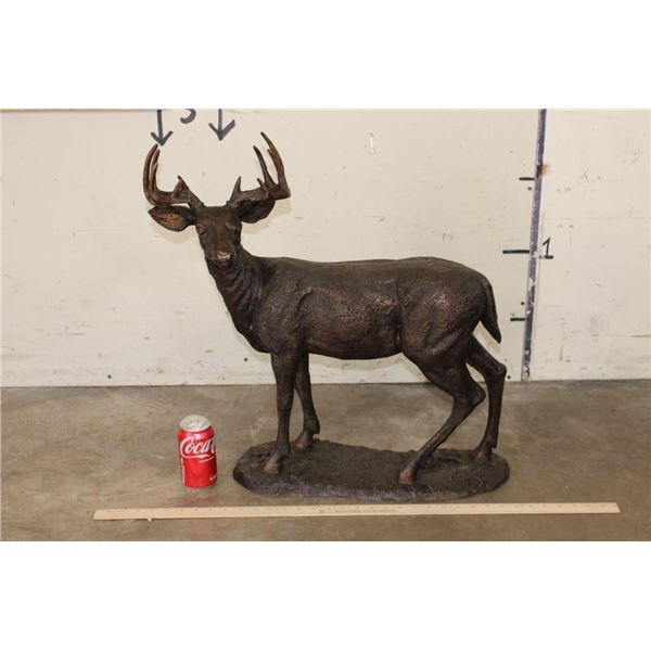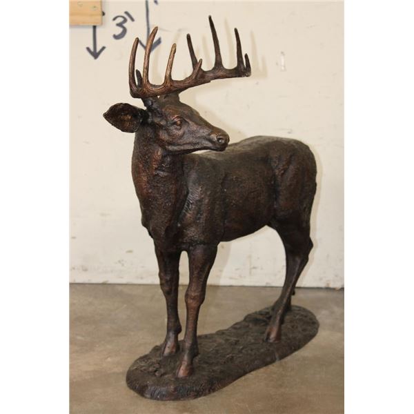 XL WHITETAIL DEER Buck Bronze Sculpture. It measures 25" Long x 11" Wide x 26" Tall and it Weighs 29 lbs. COLLECTIBLE BRONZE ART SCULPTURES AND STATUES