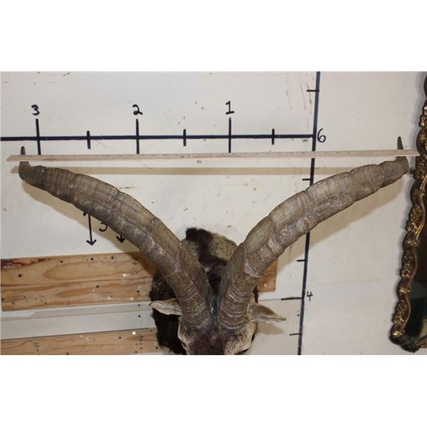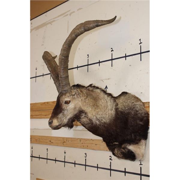 Very Nice and Big GREDOS IBEX Shoulder Mount. The Left Horn measures 30" Long and the Right Horn measures 29" Long. It has a 35" Horn Spread. TAXIDERMY