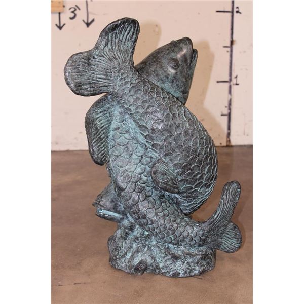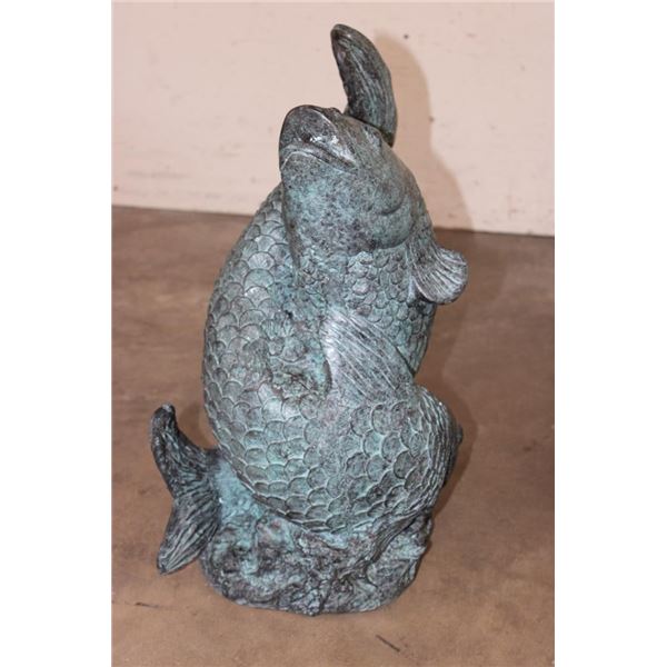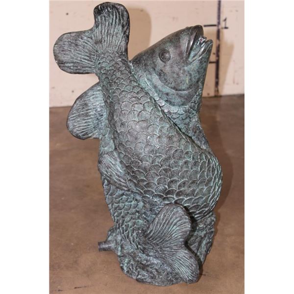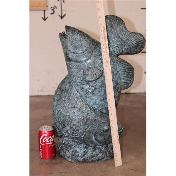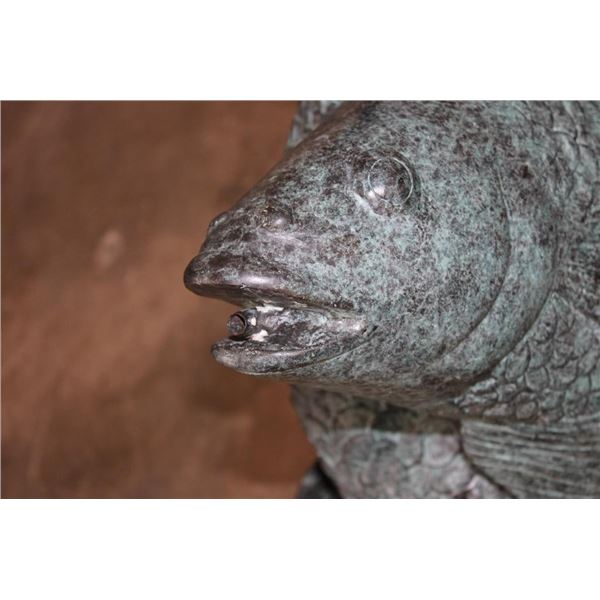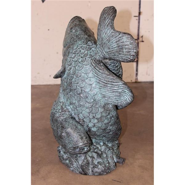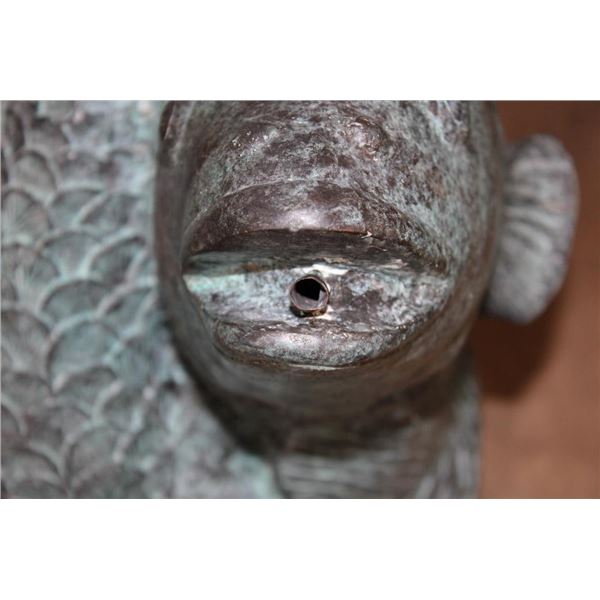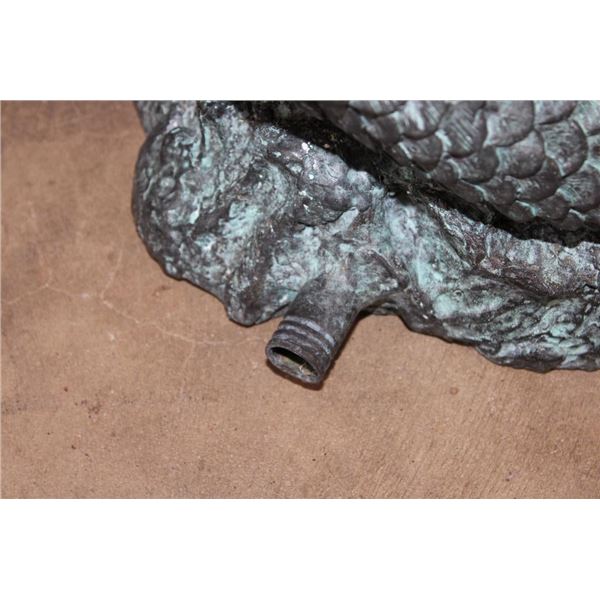 Big Bronze KOI FISH Fountain. The Koi Fish sprays the water from its mouth! It measures 22" Tall x 13" Wide x 15" Long. The Total Weight is 43 lbs 10 oz. COLLECTIBLE BRONZE ART GARDEN FOUNTAINS