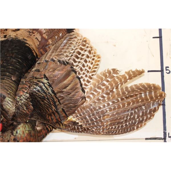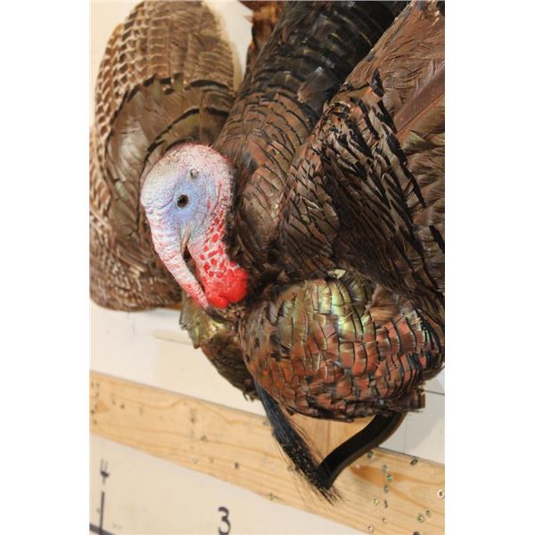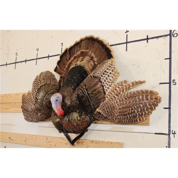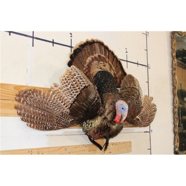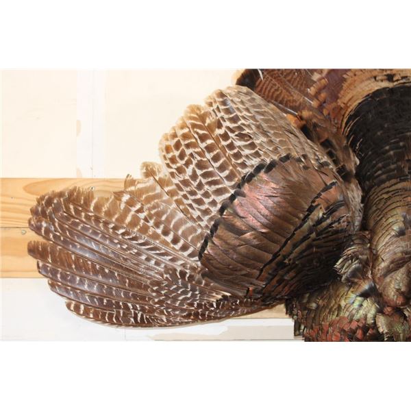 Very Unique Half Body or 1/3 Body TURKEY with its wings spread on a Wooden Plaque. The wing span is approximately 4.5' Wide and it is in Very Good Condition. TAXIDERMY