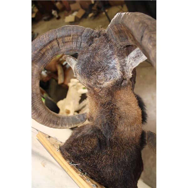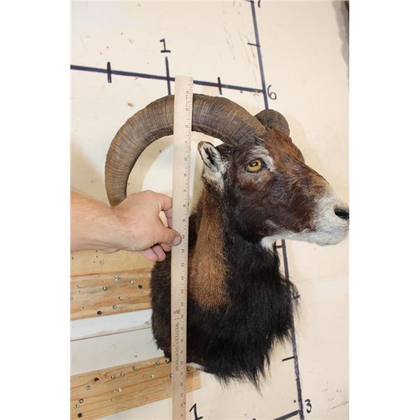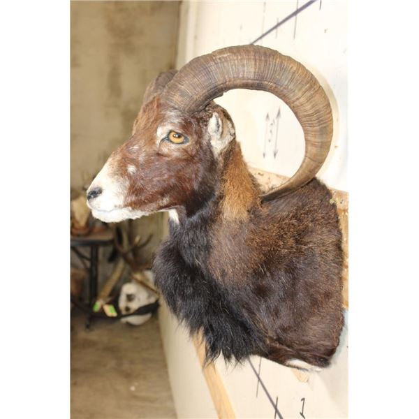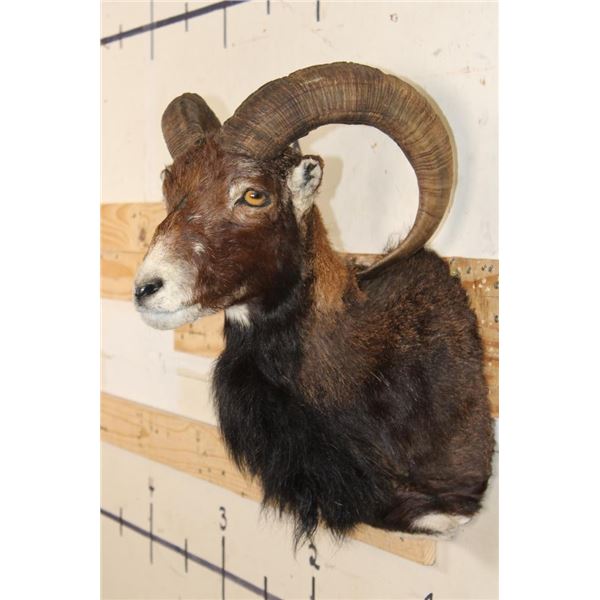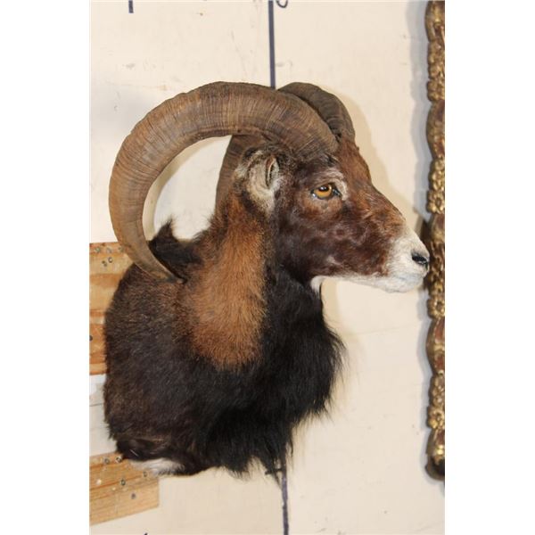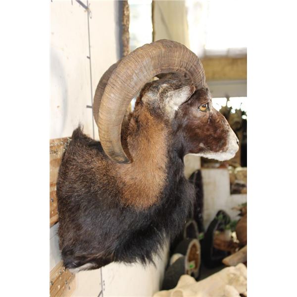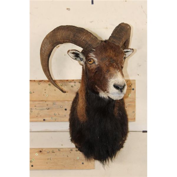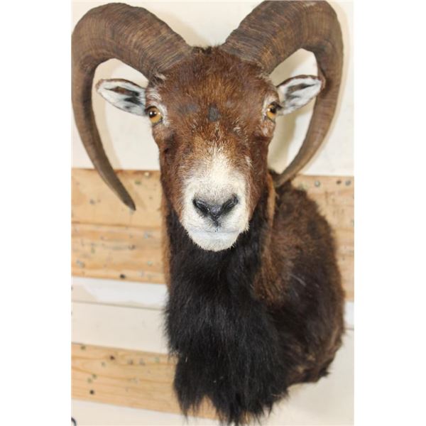 Very Nice, Clean, and Newer MOUFLON Shoulder Mount. The Left Horn measures 22.25" Long and the Right Horn measures 22.25" Long. The mount is in Very Good Condition. TAXIDERMY