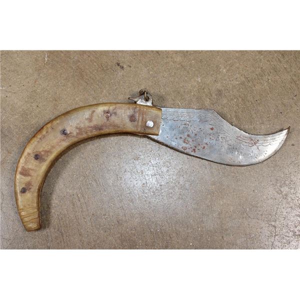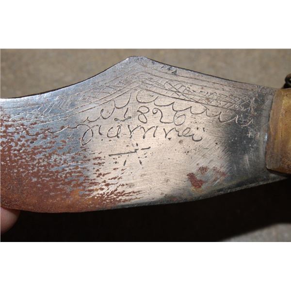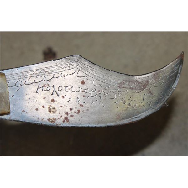 200 Year Old Antique KNIFE, Blade Etched "1826" with Writing in a Foreign Language. It measures approximately 9" Long. COLLECTIBLE ANTIQUE KNIVES
