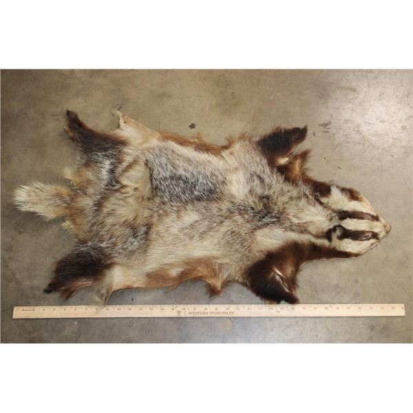 Nice EUROPEAN BADGER Hide or Pelt. It measures 36" Long x 20" Wide and is in Good Condition. TAXIDERMY HIDES