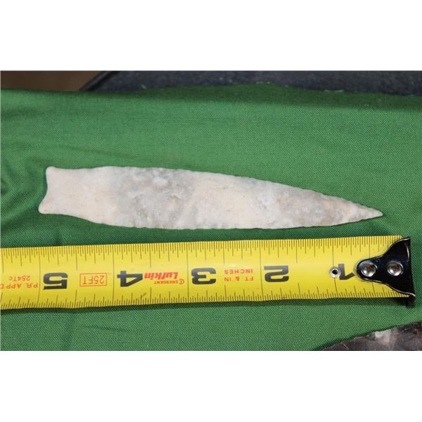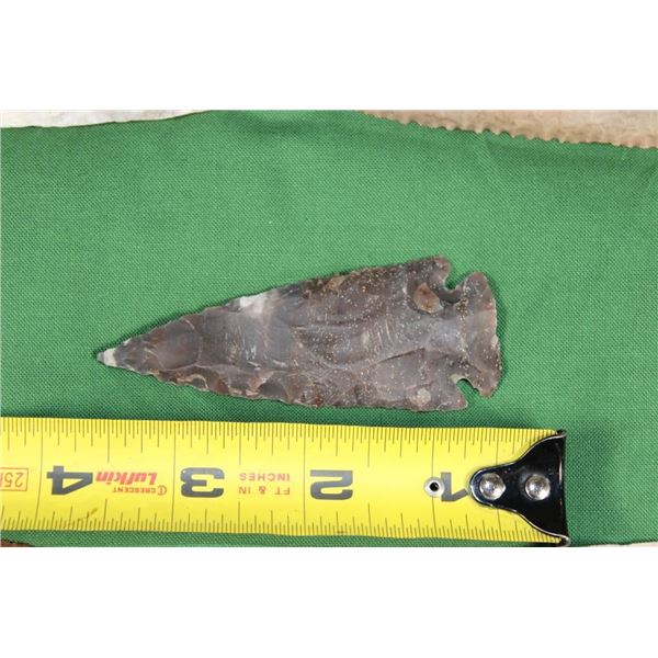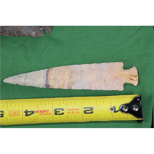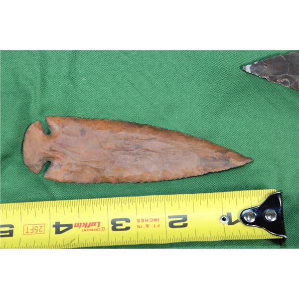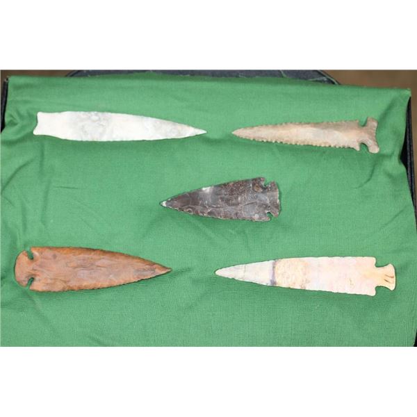 5 Flint Spear Point ARROWHEADS. The Arrowheads measure 3.25" to 4 7/8" Long. They have been displayed in a Case with glass that measures 12" Long x 8" Wide.?These Arrowheads are beautiful and were handcrafted with amazing detail. (ONE$) ARROWHEADS