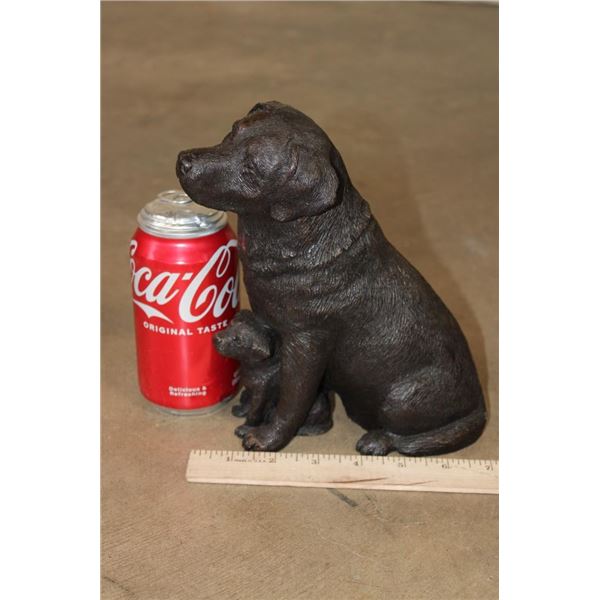 Mother DOG with Her PUPPY Bronze Sculpture. It measures 7.5" Long x 3.75" Wide x 8.25" Tall. The Total Weight is 4 lbs 6 oz. COLLECTIBLE BRONZE SCULPTURE OR STATUE