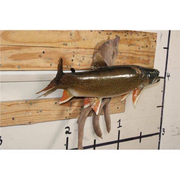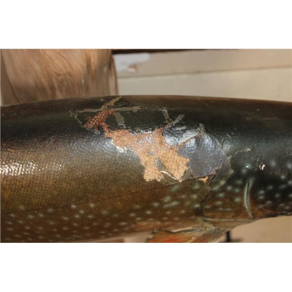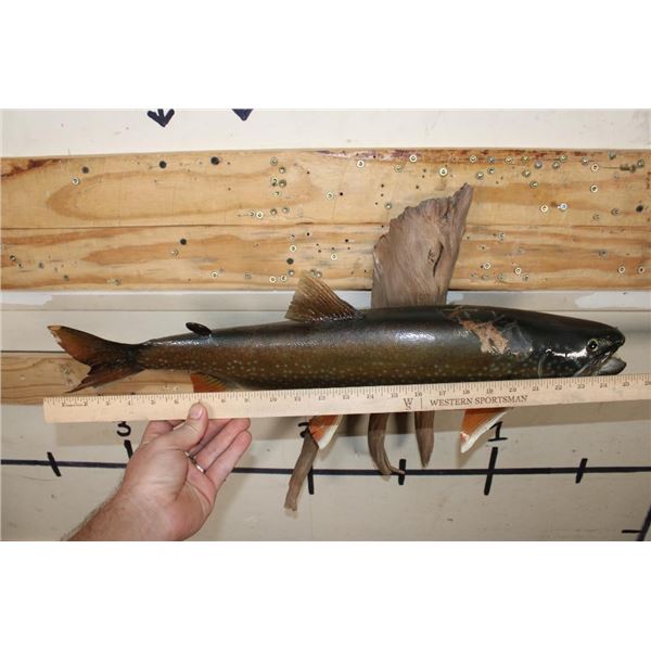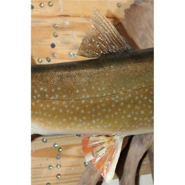 *Real Skin* BROOK TROUT on a Driftwood Wall Hanger. The Brook Trout measures 25.5" Long. It has some fin and skin damage. TAXIDERMY FISH