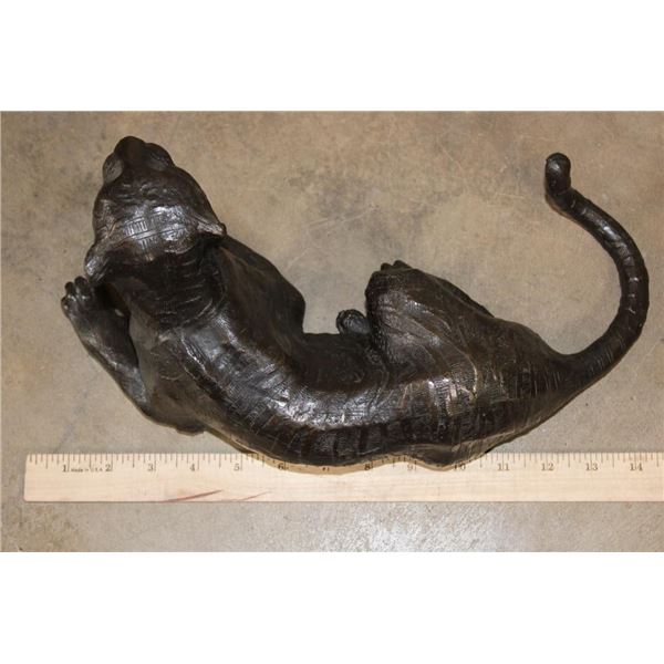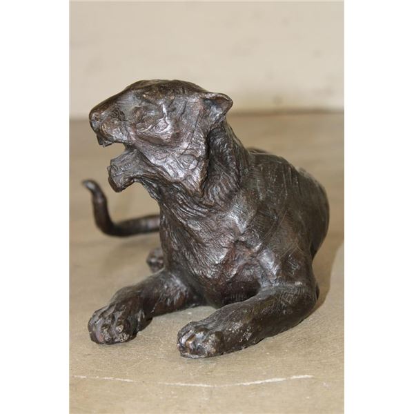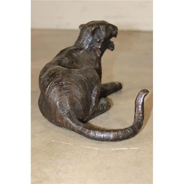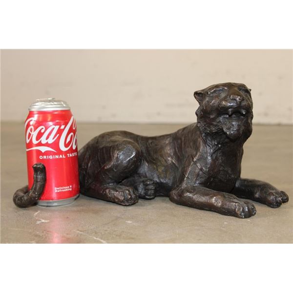 Laying TIGER Bronze Sculpture. It measures 13.75" Long x 7.5" Wide x 6.25" Tall. The Total Weight is 10 lbs. COLLECTIBLE BRONZE SCULPTURES AND STATUES