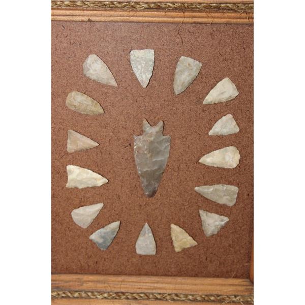 16 Prehistoric South Texas Bandera Willow Leaf Flint Spear Points or Preform Arrowheads. These are surface finds from South Texas and are primarily made of Bandera Flint. These were used as Spear Points. They date to the Archaic Period (8000-1000 BC). Bandera flint arrowheads refer to artifacts found in Bandera County, Texas often identified as Martindale points or other archaic projectile points. They are displayed in a 14" Tall x 12" Wide Wood and Glass Frame. COLLECTIBLE ANCIENT AND PREHISTORIC ARTIFACTS ARROWHEADS *While these arrowheads came from an estate of a long-time collector; we as the auction company are not going to get into a protracted discussion about age and authenticity. This collector has no paperwork or COA as to age or authenticity. While we believe the vast majority; if not all to be old; we are wholly uncomfortable with an argument with qualified and unqualified, alleged authorities. All of that to say; we are not guaranteeing age or authenticity*