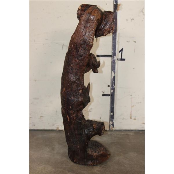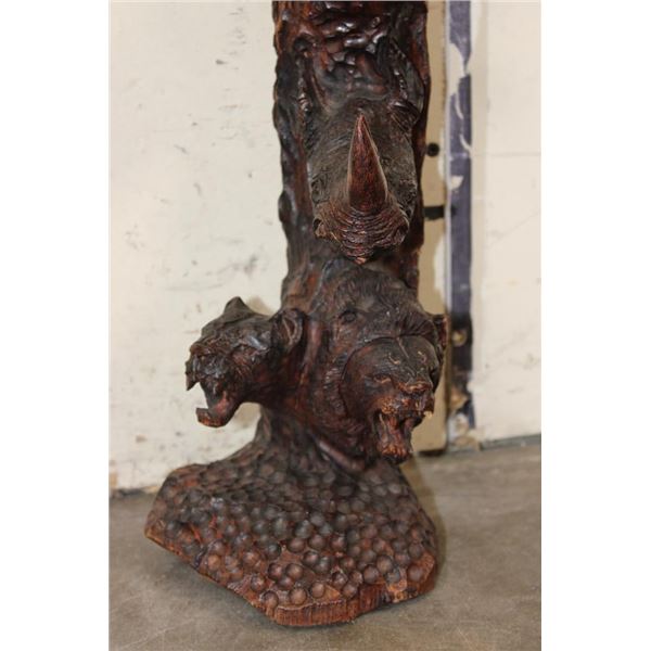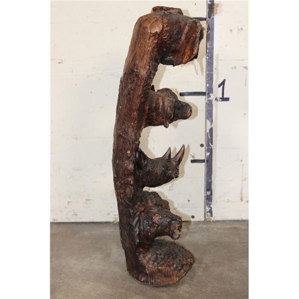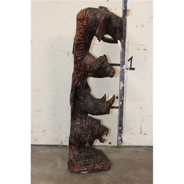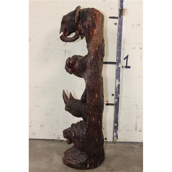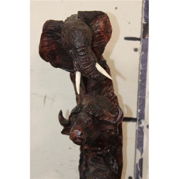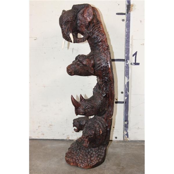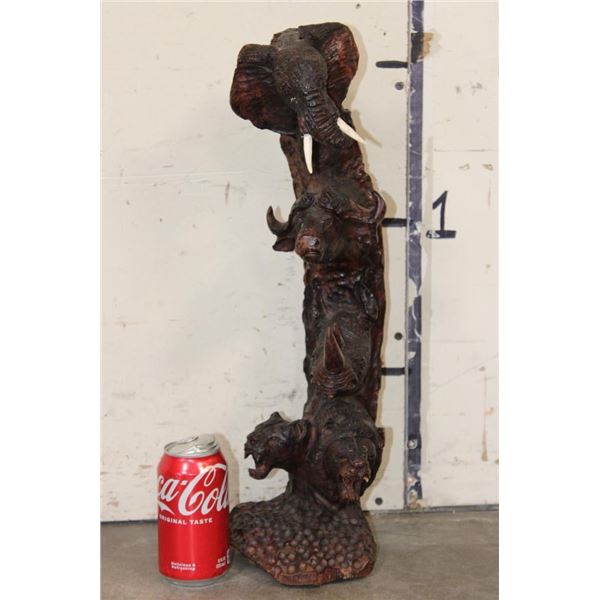 Hand-carved Wooden African "Big 5" Statue. It measures 6" Long x 6" Wide by 20" Tall and Weighs 6 lbs 4 oz. COLLECTIBLE AFRICAN ART SCULPTURES AND STATUES
