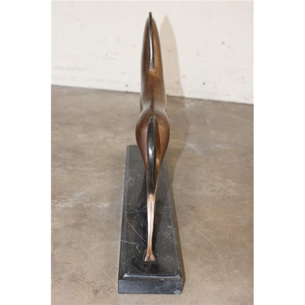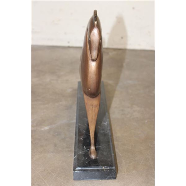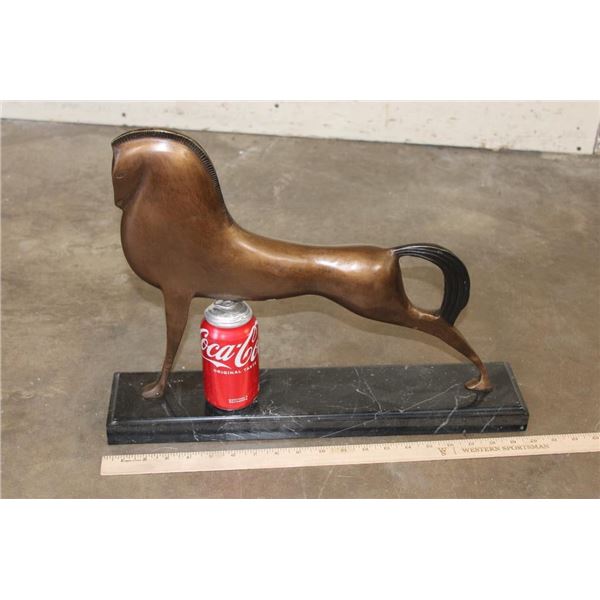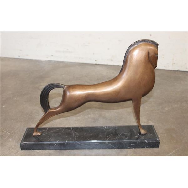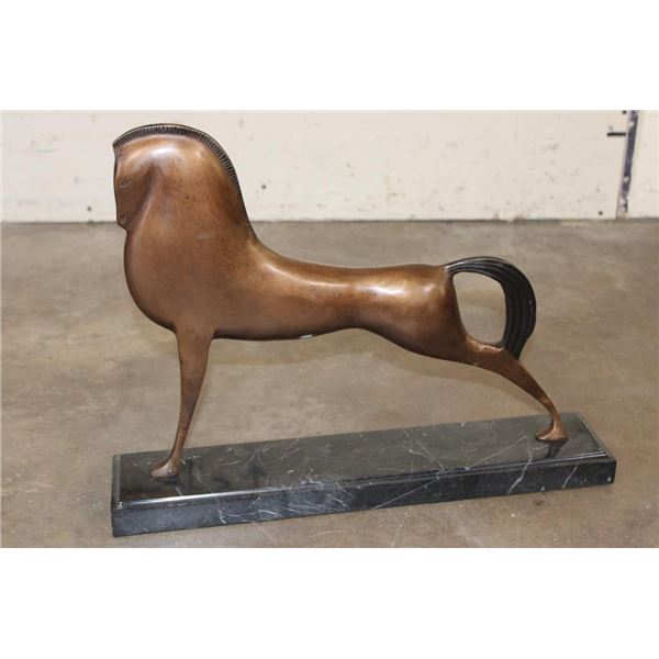 Abstract Bronze HORSE Sculpture on a Marble Base. This sculpture is after Boris Lovet-Lorski. It measures 20" Long x 4" Wide x 14" Tall.  The Total Weight is 16 lbs 13 oz. The Etruscan horse is a significant motif in Estruscan art and culture, often symbolizing strength, power, and status. The Etruscan civilization was located in Italy, primarily in the region known today as Tuscany, as well as parts of Umbria and northern Lazio. COLLECTIBLE BRONZE SCULPTURES AND STATUES