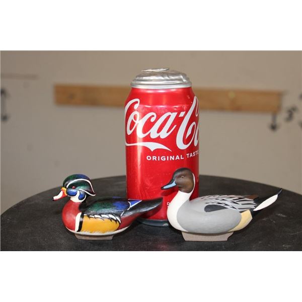 2 Collectible Miniature Jett Burnet "Ducks Unlimited" Resin Duck Decoys. 1 Pintail Duck Decoy from 2003 and one Wood Duck from 2000. Each measures approximately 4" Long x 2.5" Tall. The Total Weight is 9 oz. (ONE$) COLLECTIBLE DUCK DECOYS