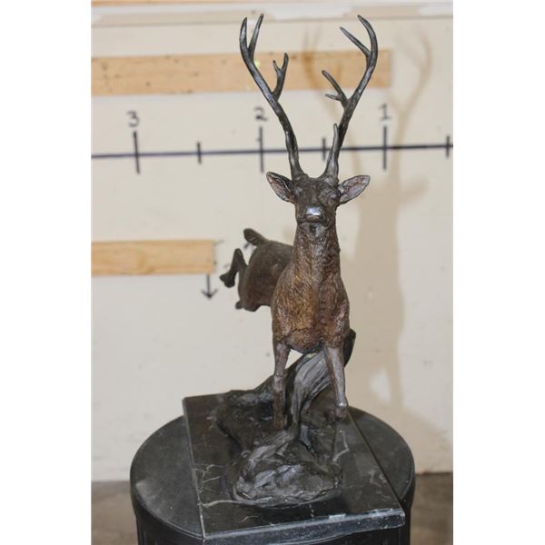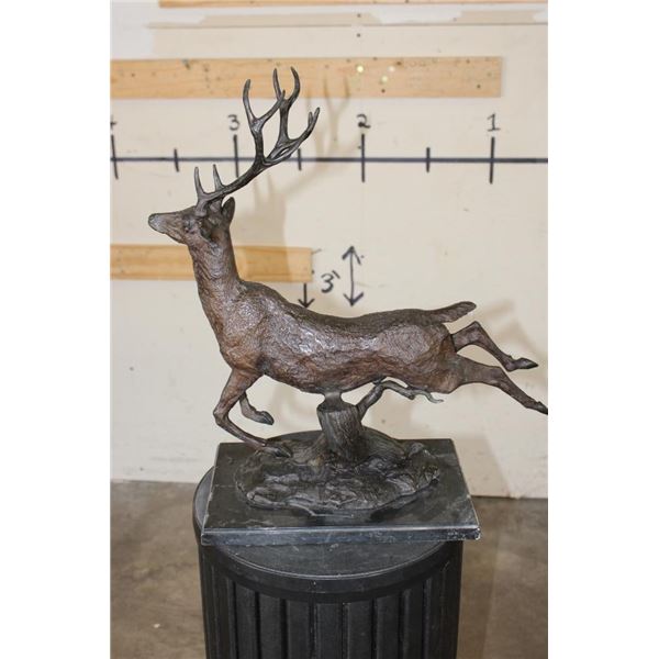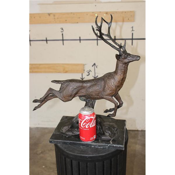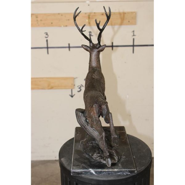 Big Jumping DEER Bronze Sculpture on a Marble Base. It measures 18.5" Tall x 18" Long x 8" Wide. The Total Weight is 15 lbs 10 oz. COLLECTIBLE BRONZE SCULPTURES AND STATUES
