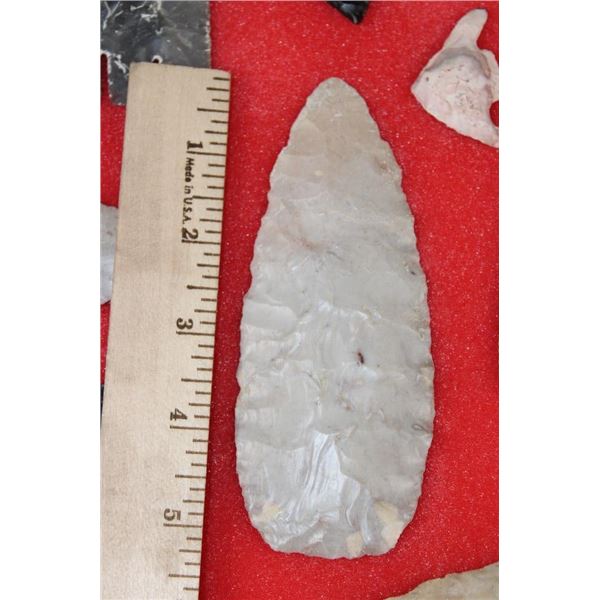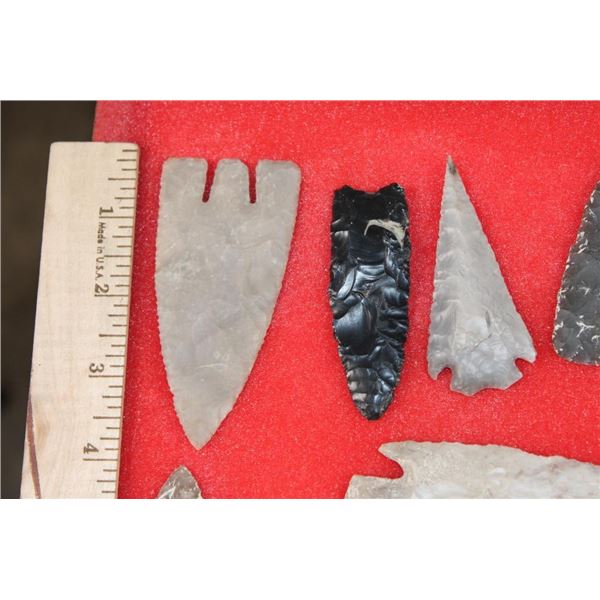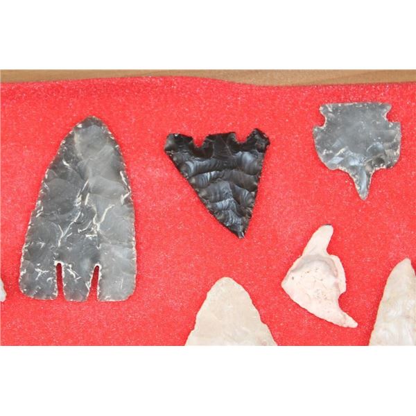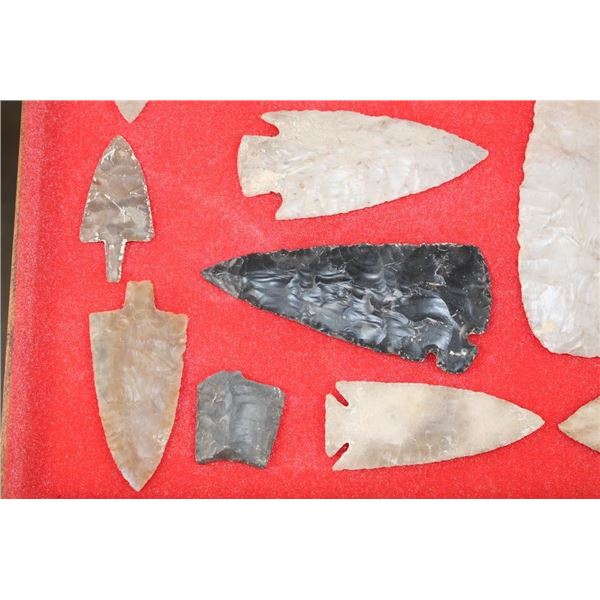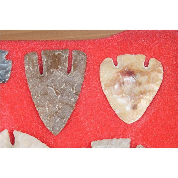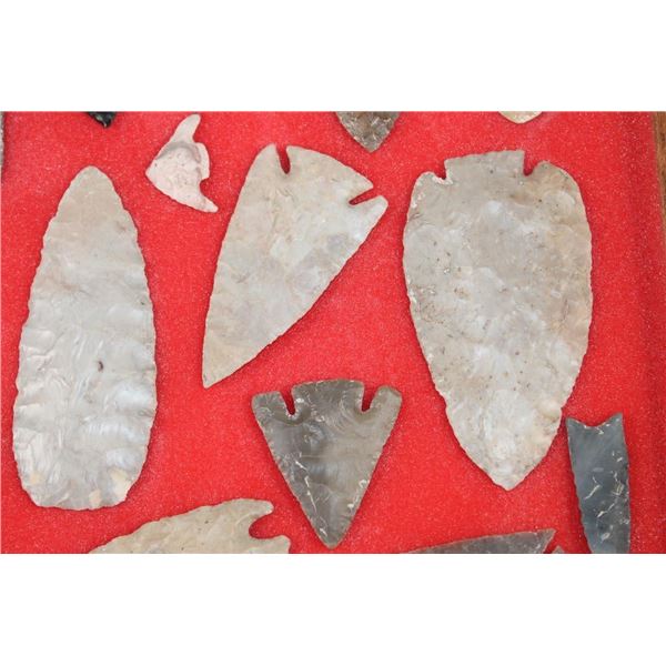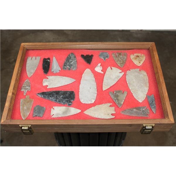 (22) Walnut Press Frame of an incredible group of ARROWHEADS in various Types and Types of Flint. They measure from 1.75" Long to the largest that measures 5.25" Long. They have been beautifully displayed in a 18" Long x 12.25" Wide Wood Box Case with a Glass lid. (ONE$) ARROWHEADS *While these arrowheads came from an estate of a long-time collector; we as the auction company are not going to get into a protracted discussion about age and authenticity. This collector has no paperwork or COA as to age or authenticity. While we believe the vast majority; if not all to be old; we are wholly uncomfortable with an argument with qualified and unqualified, alleged authorities. All of that to say; we are not guaranteeing age or authenticity*