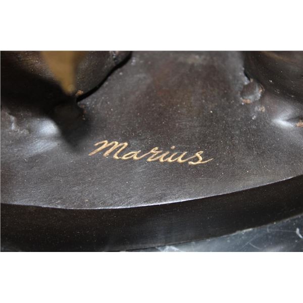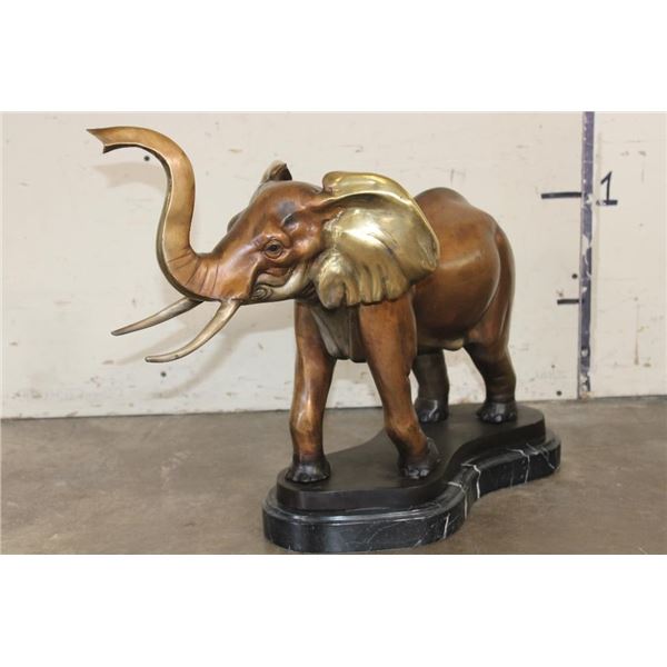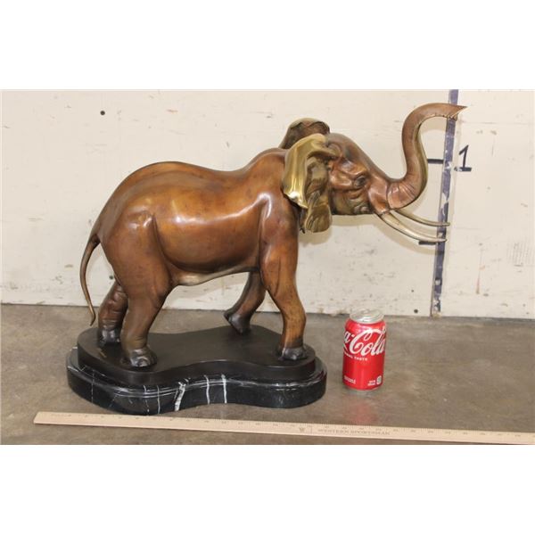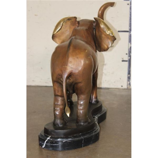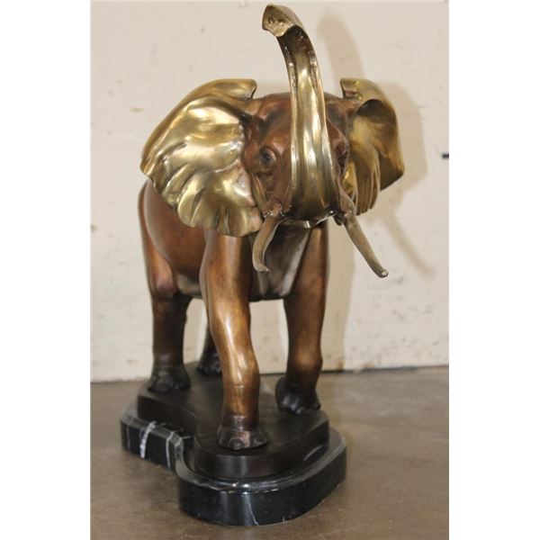 Big Elephant BRONZE Sculpture on a Marble Base, Signed by the artist Marius. It measures 24" Long x 11" Wide x 18.5" Tall. The Total Weight is 32 lbs 3 oz. An elephant with its trunk raised is generally seen as a symbol of good luck, prosperity, and positive energy. COLLECTIBLE ART SCULPTURES BRONZES