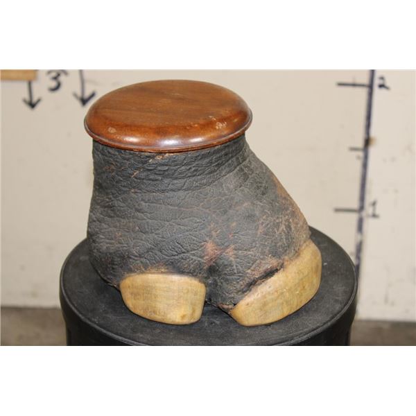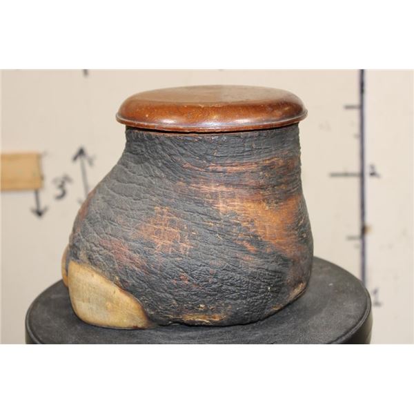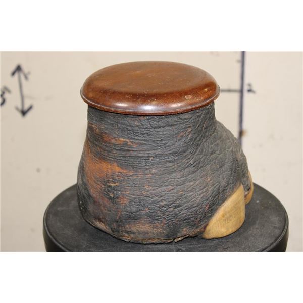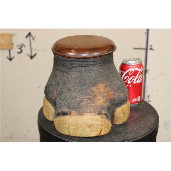 *TEXAS RESIDENTS ONLY*!!! *Real Skin* RHINOCEROS Foot Canister with a Wooden Lid. It measures 10" Long x 9" wide x 7.5" Tall. The Total Weight is 4 lbs 14 oz. TAXIDERMY