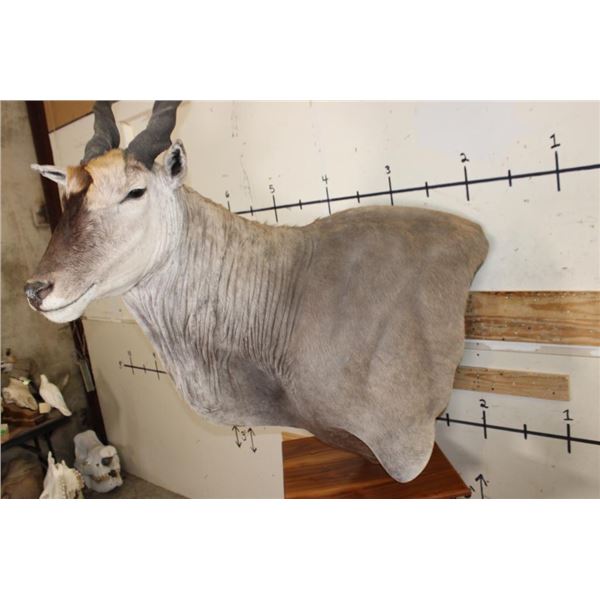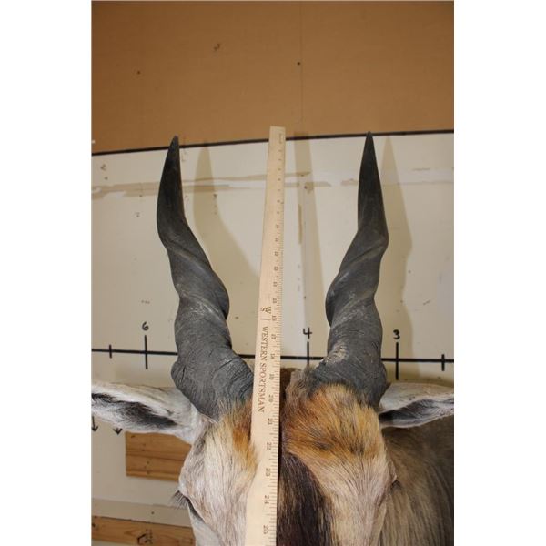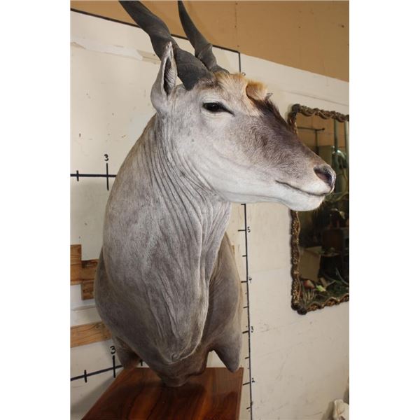 Incredible ELAND Pedestal Mount. It looks Brand New! This is a Very High Quality with mount on a Sheesham Wood Pedestal. The Total Mount Height is over 8' Tall. The Wood Pedestal approximately 3' Tall and the Eland is Removable. TAXIDERMY