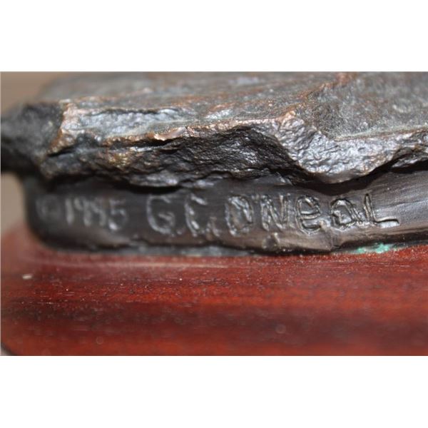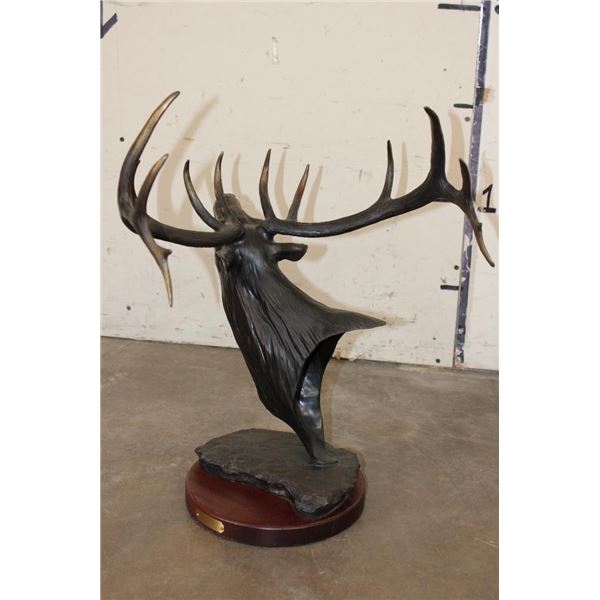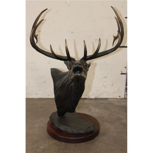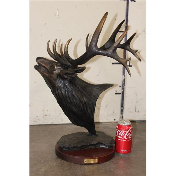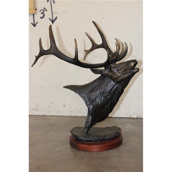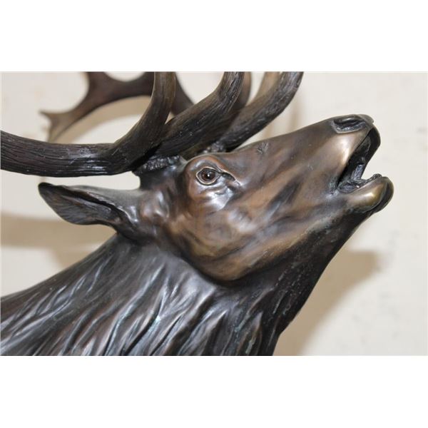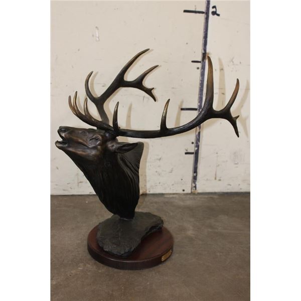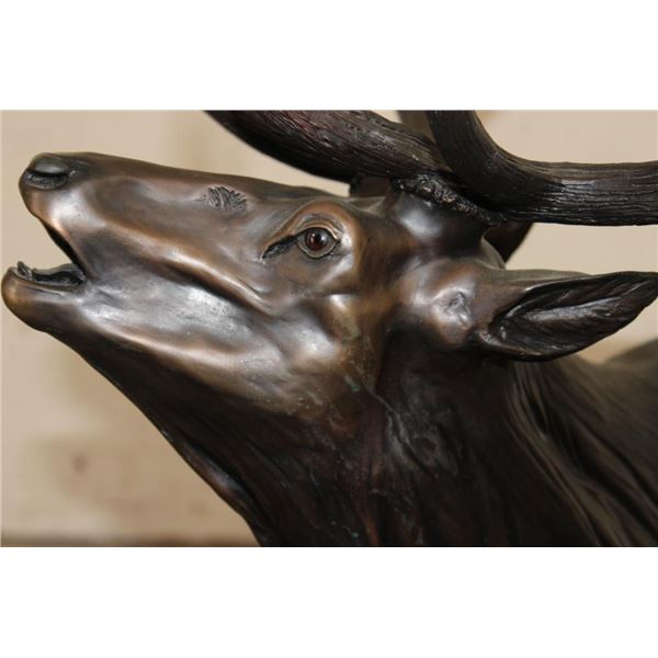 Original Limited Edition "Bugle Boy" Elk Bronze signed by artist Greg O'Neal. The Elk Bronze has glass eyes. It is numbered #7 of 18. The Total Weight is 20 lbs 13 oz. It measures 21.25" Tall x 17" Long x 16" Wide and is on a wooden base. COLLECTIBLE BRONZE ART SCULPTURES AND STATUES