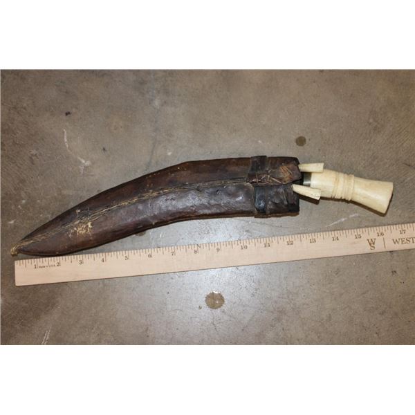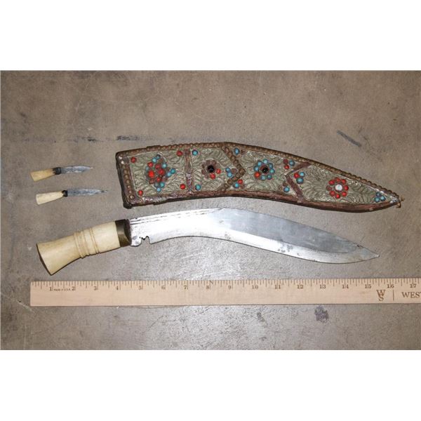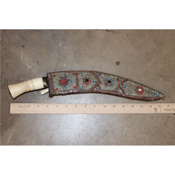 Antique 19th Century (1800's) Nepalese KUKRI KNIFE with a Beaded Sheath. The Kukri is the national weapon of Nepal, traditionally serving the role of a basic utility knife for the Nepali-speaking Gurkahas (soldiers of Nepal). COLLECTIBLE ASIAN KNIVES