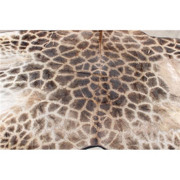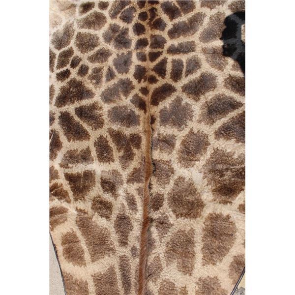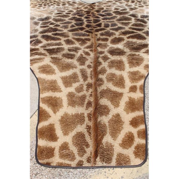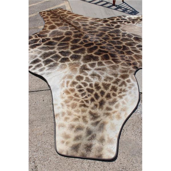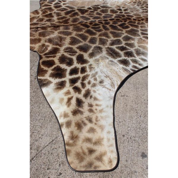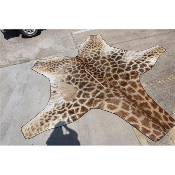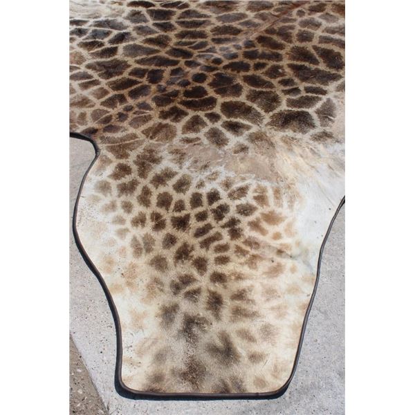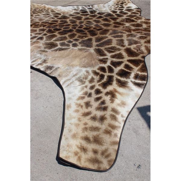 This is the Nicest XXL Giraffe rug we have ever seen! It looks Brand New and has beautiful dark spots. Made with high quality construction- complete with a canvas backing, hanging loops, and Leather piping. It measures 13' 4" from the Neck to the Ankle and has a 15' Wingspan. TAXIDERMY RUGS