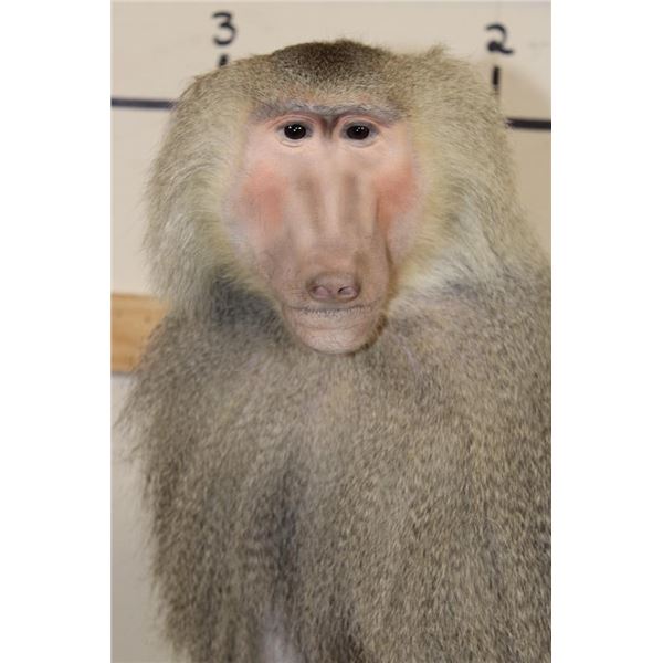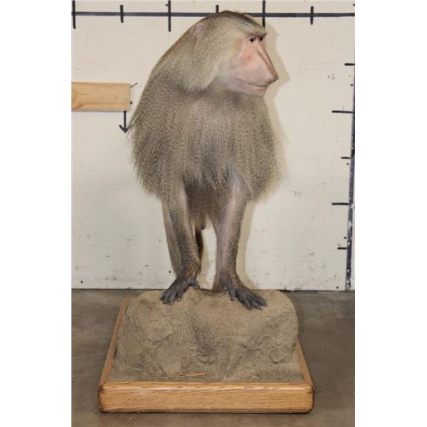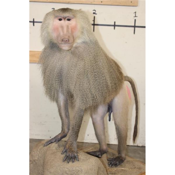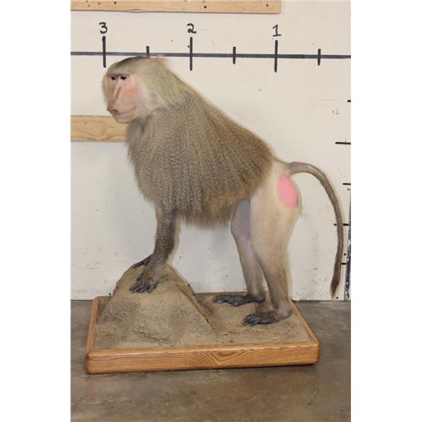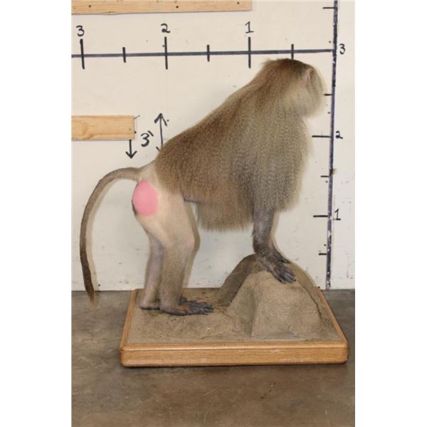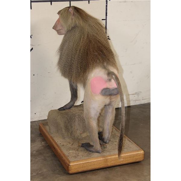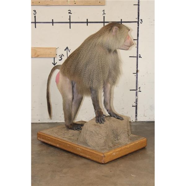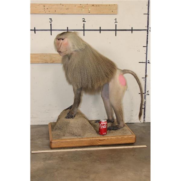 Nice *Rarely Seen* Life-sized HAMADRYAS BABOON. It is mounted on a Wood Base that measures 27.5" Long x 20" Wide. TAXIDERMY