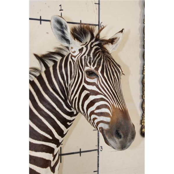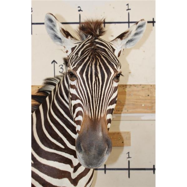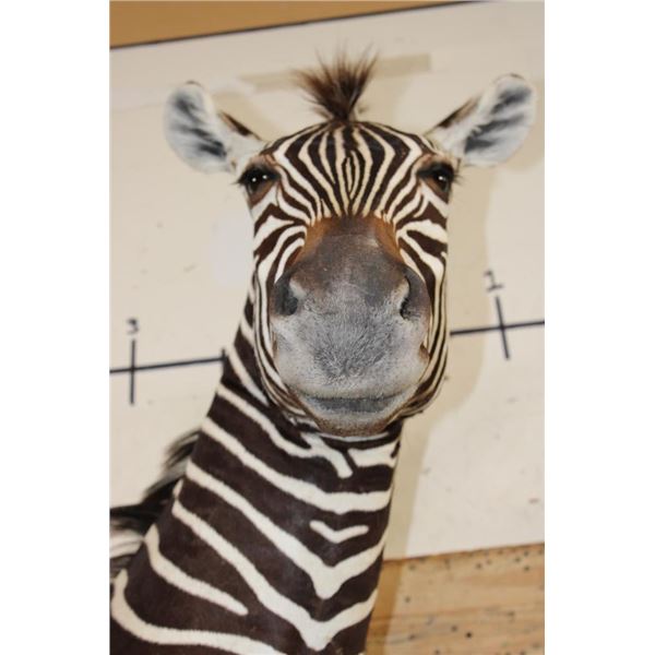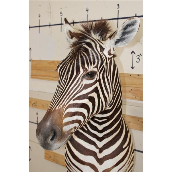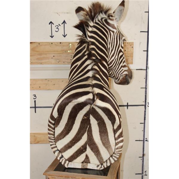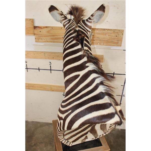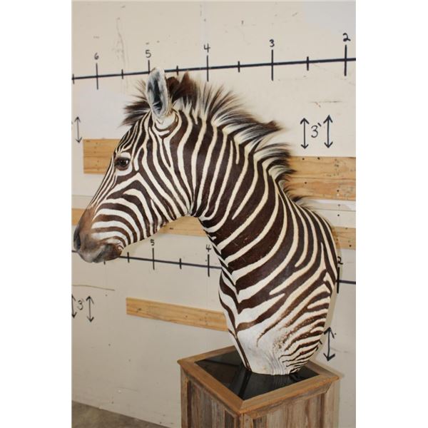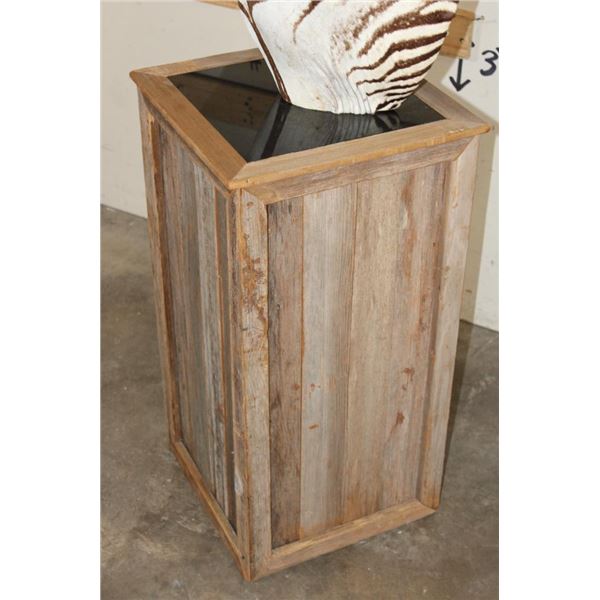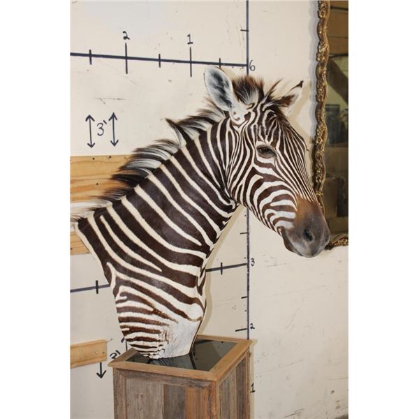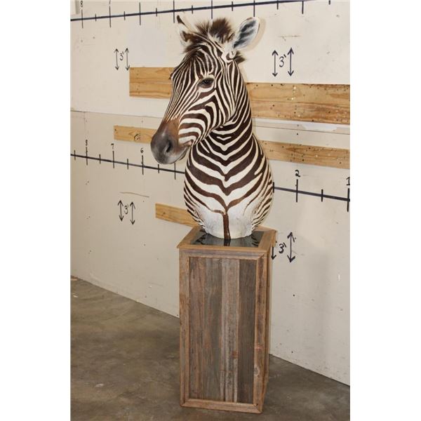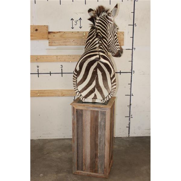 Very Nice, Clean, and Newer ZEBRA Pedestal Mount. The square Pedestal is made from rustic wood. It is in Very Good Condition. TAXIDERMY