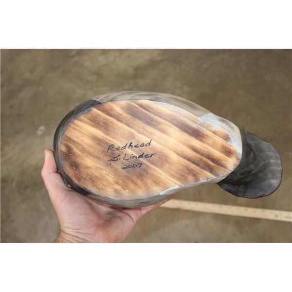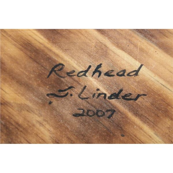 Original Hand-carved and Hand-Painted Duck Decoy. It has been signed "J. Linder 2007" and has Glass Eyes. COLLECTIBLE DUCK DECOYS
