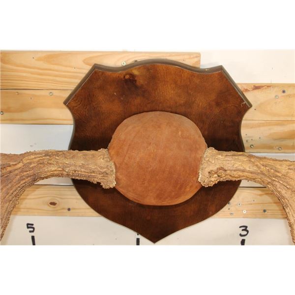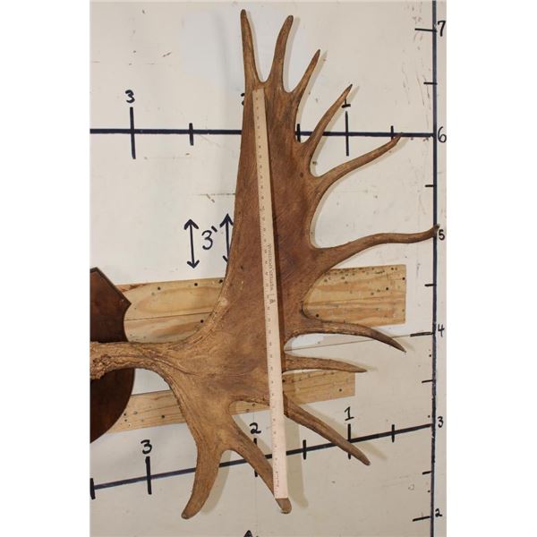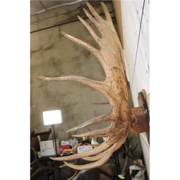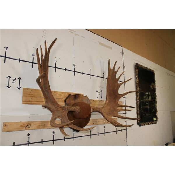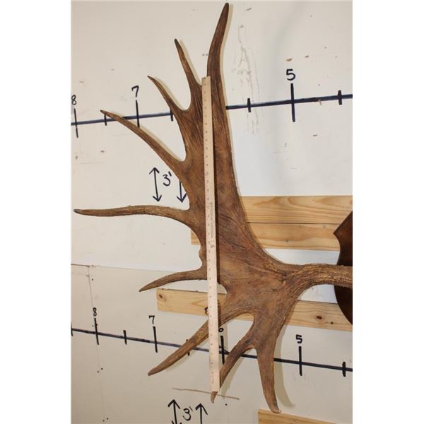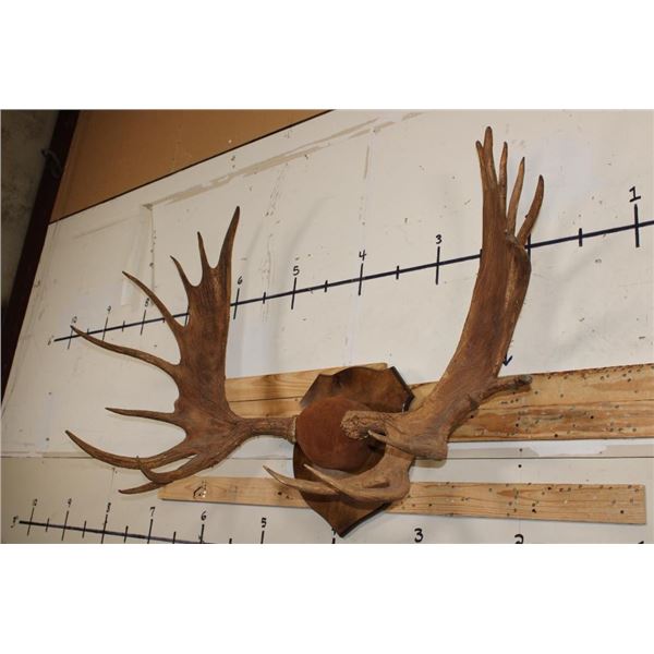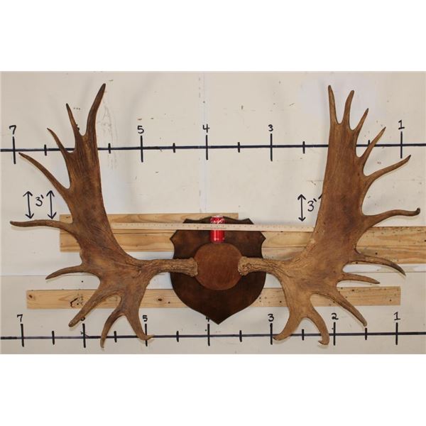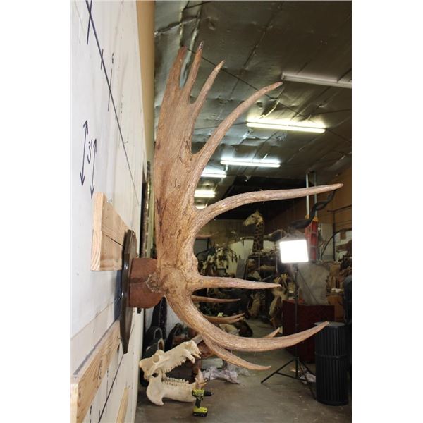 XXL 20-Point Mounted MOOSE Antler Rack. It has a 62 3/8" Spread and has been displayed on a Wooden Plaque. TAXIDERMY