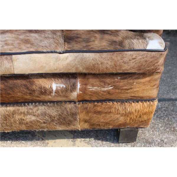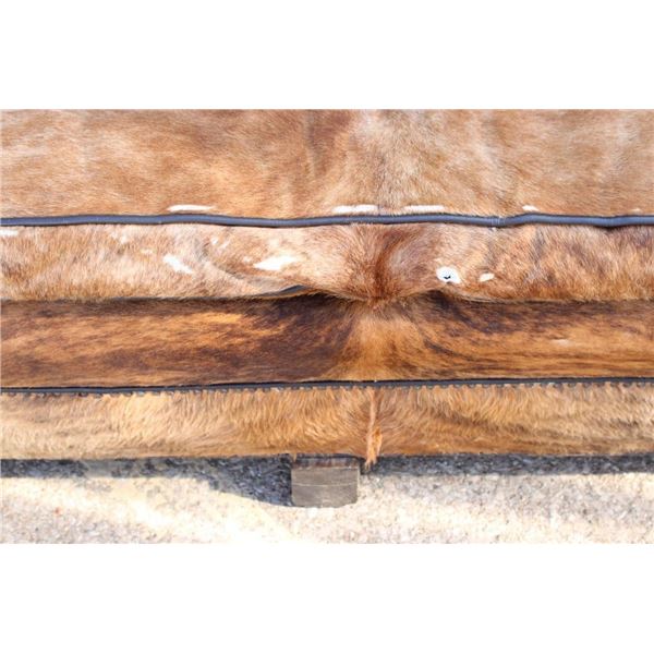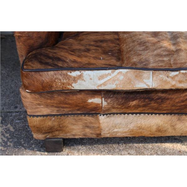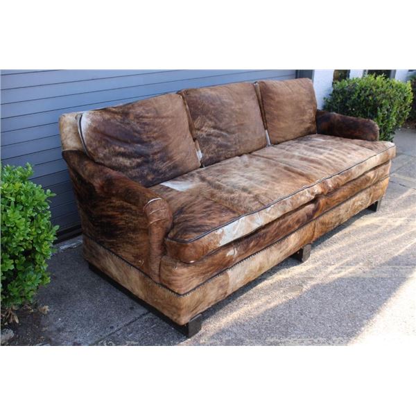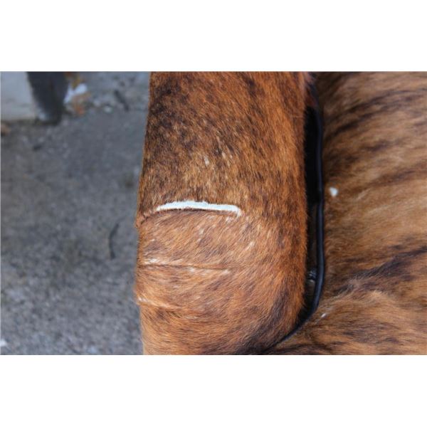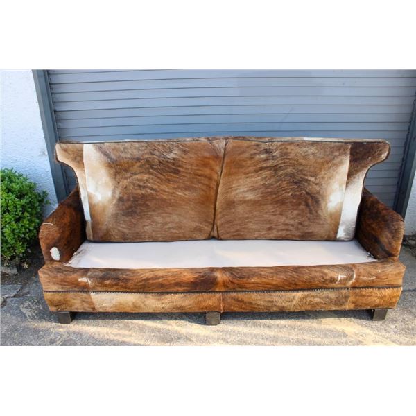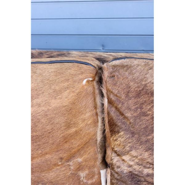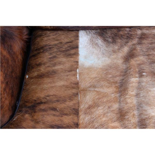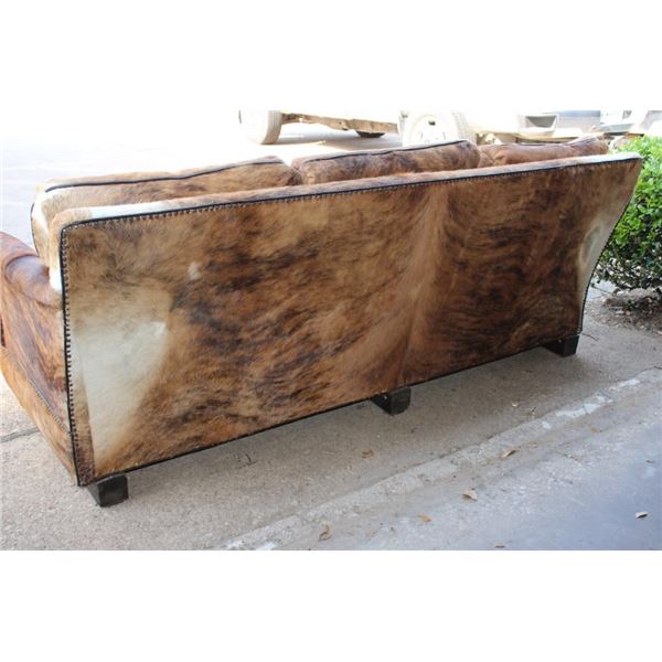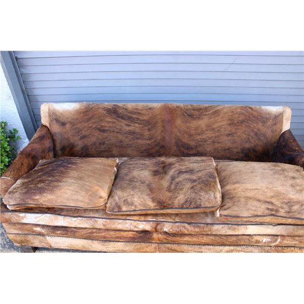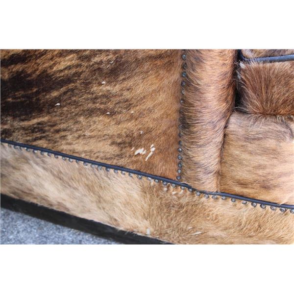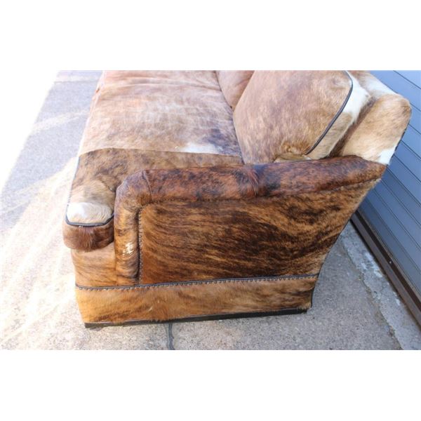 This is a Big Brindle COWHIDE Couch in Good Condition. It has stunning colors. The Cowhide so soft and in great shape. It has a few minor blemishes. It will be eye-catching in any space especially with a rustic or western aesthetic. It measures 7' 6" Long x 3' Tall x 38" Deep. *This item was sold in our last auction. The buyer did not pay, it is being resold*. TAXIDERMY FURNITURE COUCHES?AND SOFAS