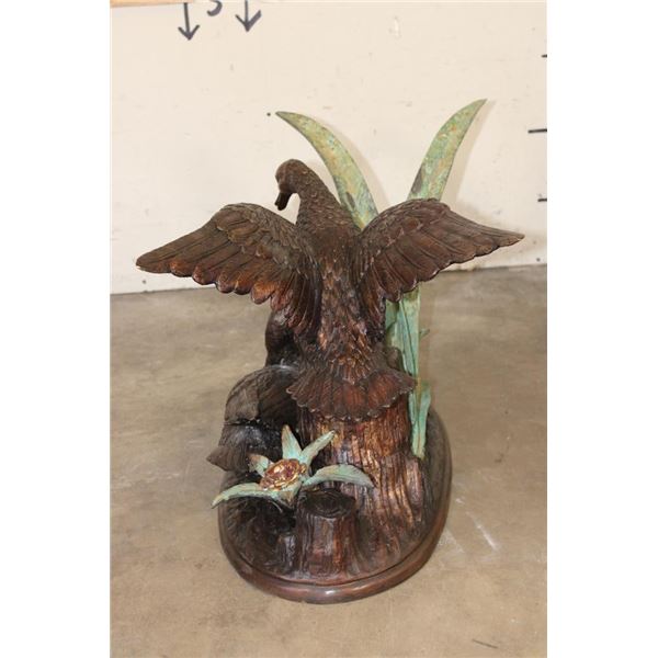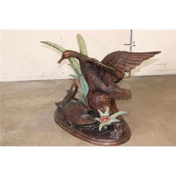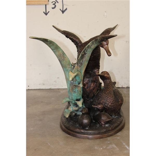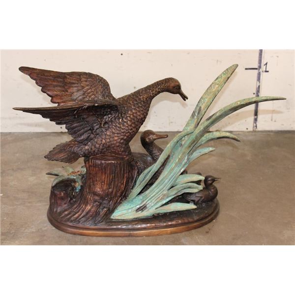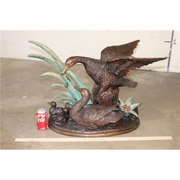 XXL DUCK Family Bronze Sculpture on a Bronze Base. It measures 31" Long x 18" Wide x 21" Tall. The Total Weight is 79 lbs 10 oz. COLLECTIBLE BRONZE WILDLIFE SCULPTURES AND STATUES