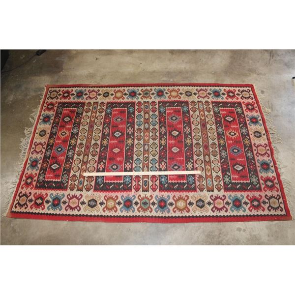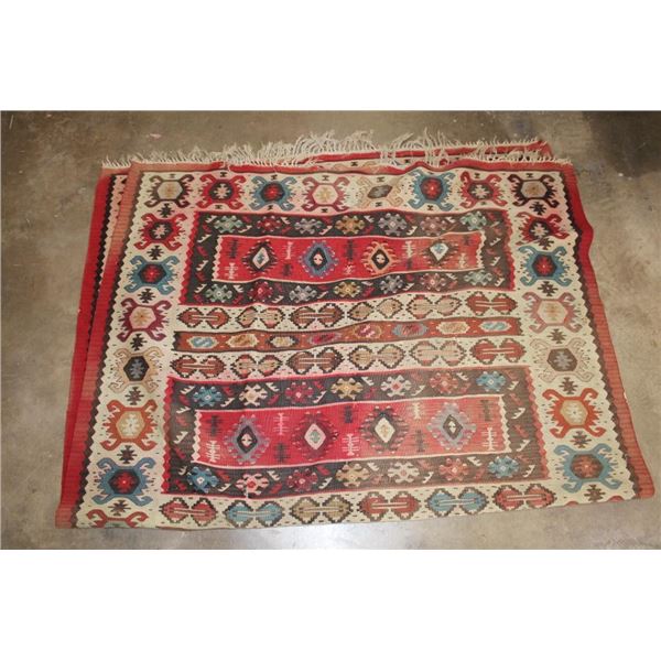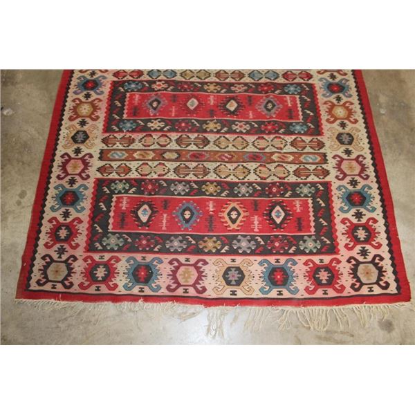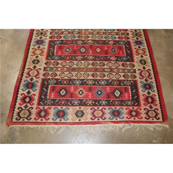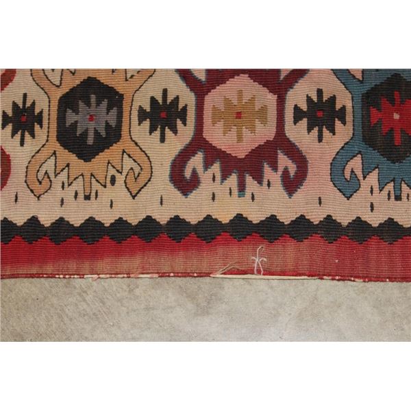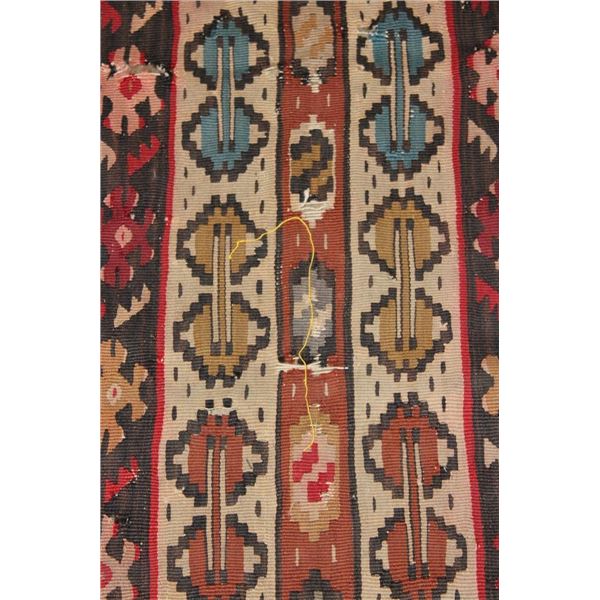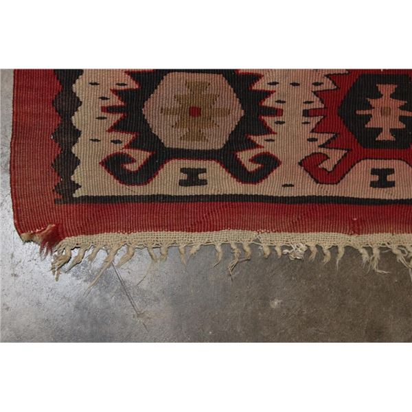 Antique Turkish Kilim Hand-woven Wool Rug. It measures 84" Long x 54" Wide and it appears to be very old. COLLECTIBLE TEXTILES AND RUGS