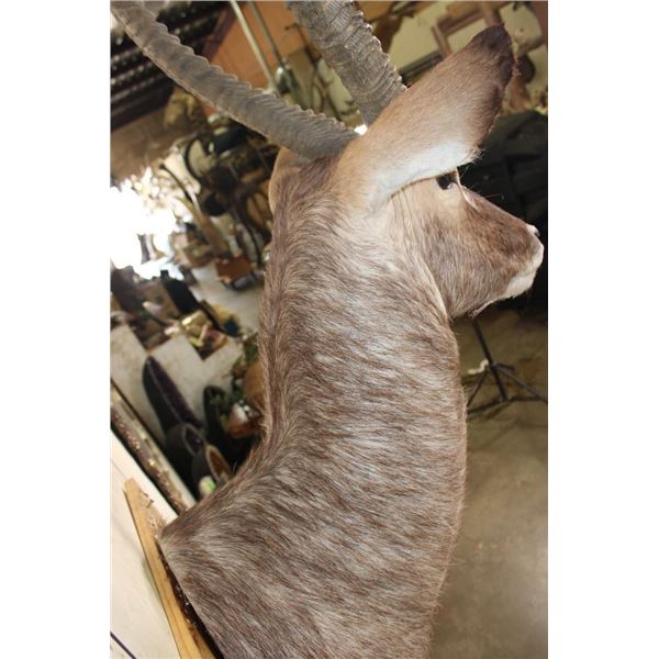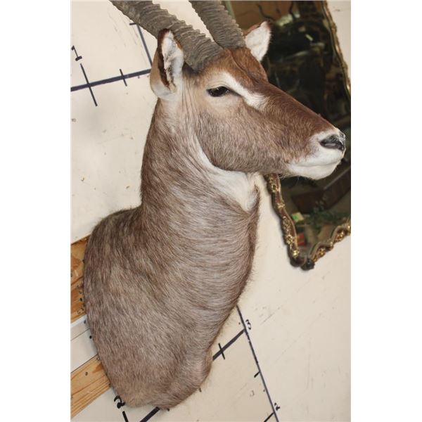 Very Nice, Clean, and Newer WATERBUCK Shoulder Mount. It looks New! The Left Horn measures 27" Long and the Right Horn measures 27.25" Long. TAXIDERMY