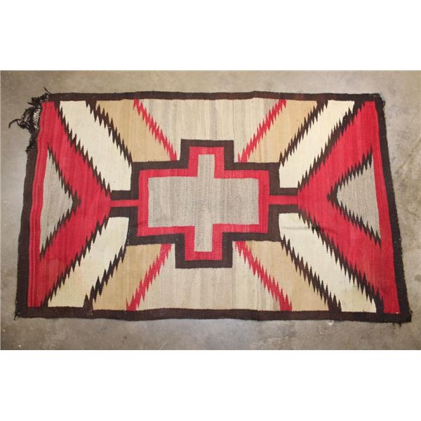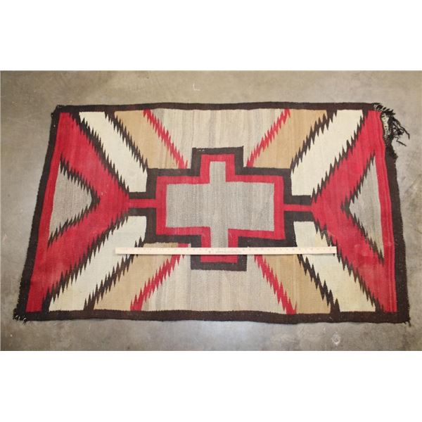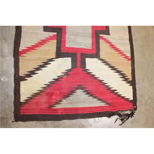 Antique Early 20th Century Hand-woven NAVAJO Rug or Blanket. It measures 63" Long x 39" Wide and has some pet stains/odors. COLLECTIBLE NATIVE AMERICAN TEXTILES RUGS AND BLANKETS