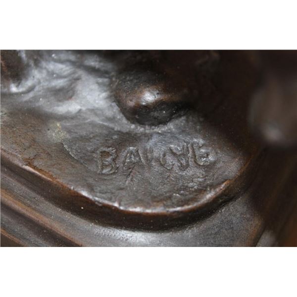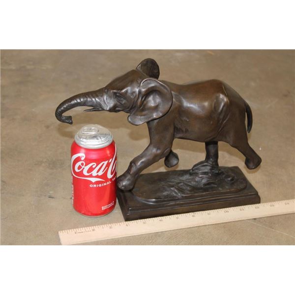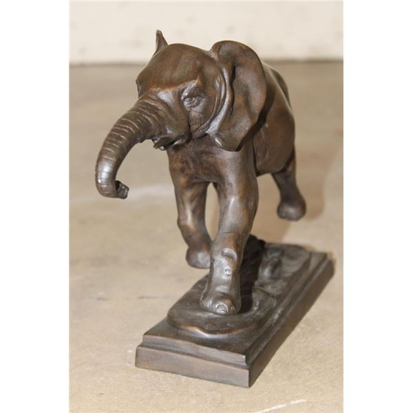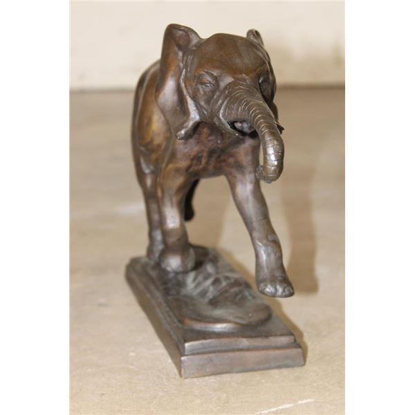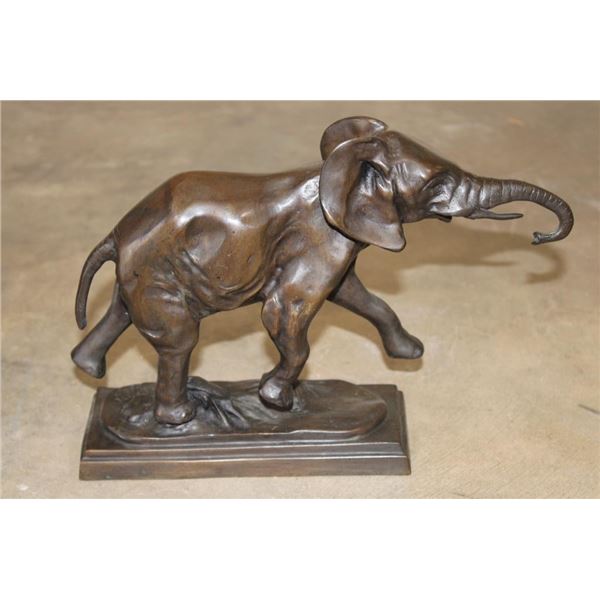 Running ELEPHANT Bronze Sculpture after and signed "Barye". It measures 11.5" Long x 3.5" Wide x 9" Tall. The Total Weight 7 lbs 5 oz. COLLECTIBLE BRONZE SCULPTURES