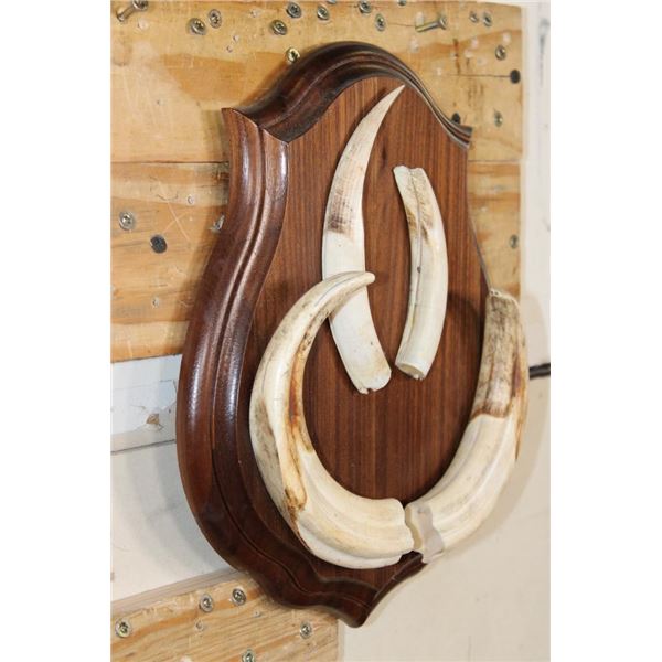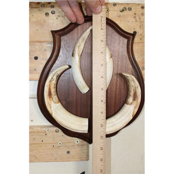WARTHOG Tusk Set on a Wooden Plaque. The Plaque measures 12" Tall x 10" Wide. TAXIDERMY