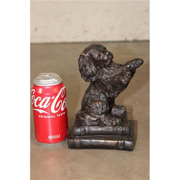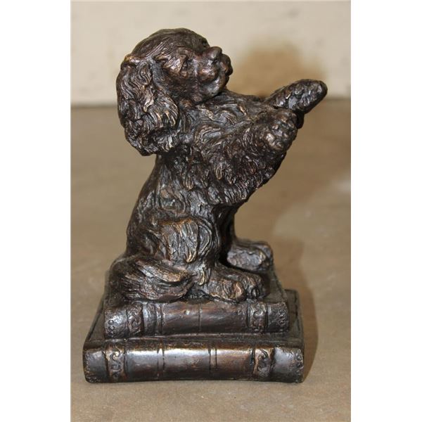 Bronze COCKER SPANIEL on 2 Books Sculpture. It measures 5.5" Long x 4" Wide x 7.5" Tall. The Total Weight is 3 lbs 9 oz. COLLECTIBLE BRONZE SCULPTURES AND STATUES
