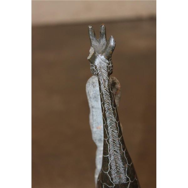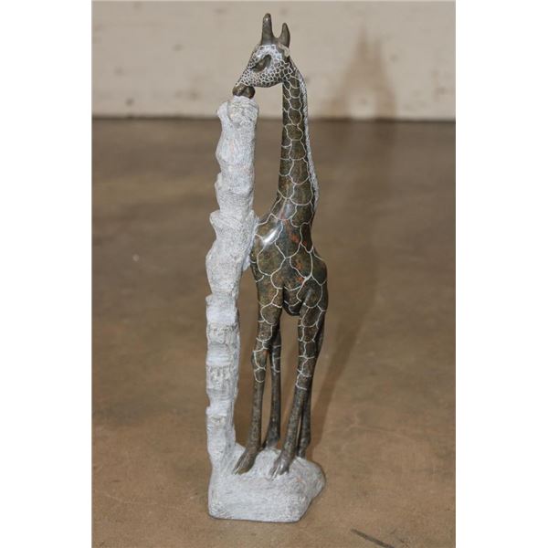 Hand-carved Soap Stone GIRAFFE Statue. It measures 12.75" Tall. COLLECTIBLE AFRICAN ART STATUES AND SCULPTURES