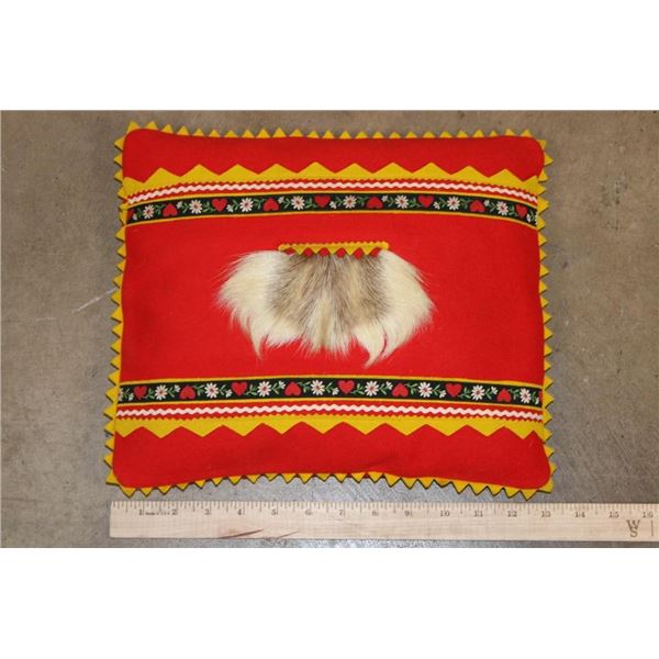 Decorative Pillow with Animal Hide. It measures approximately 13" x 13". TEXTILES AND PILLOWS