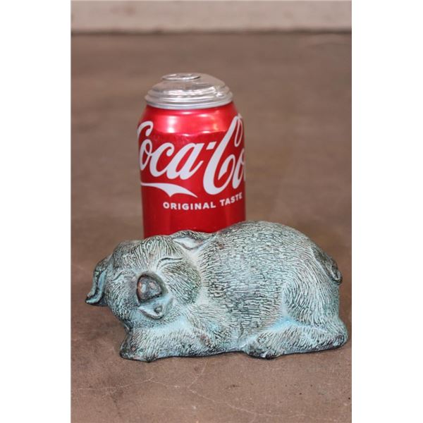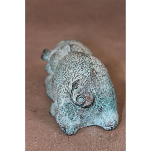 Whimsical Little Happy PIG Bronze Sculpture. It measures 5.75" Long x 3" Wide x 2.75" Tall. The Total Weight is 2 lbs 3 oz. COLLECTIBLE BRONZE SCULPTURES AND STATUES