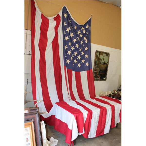 *Massive* 48 Star AMERICAN FLAG. This was too Big to measure! It is estimated to be 20' Long x 12' Wide. The Stars and Stripes have been expertly sewn. This type of American Flag was used from July 4, 1912 until July 3, 1959. This flag is from 1959 or Older. COLLECTIBLE AMERICAN FLAGS