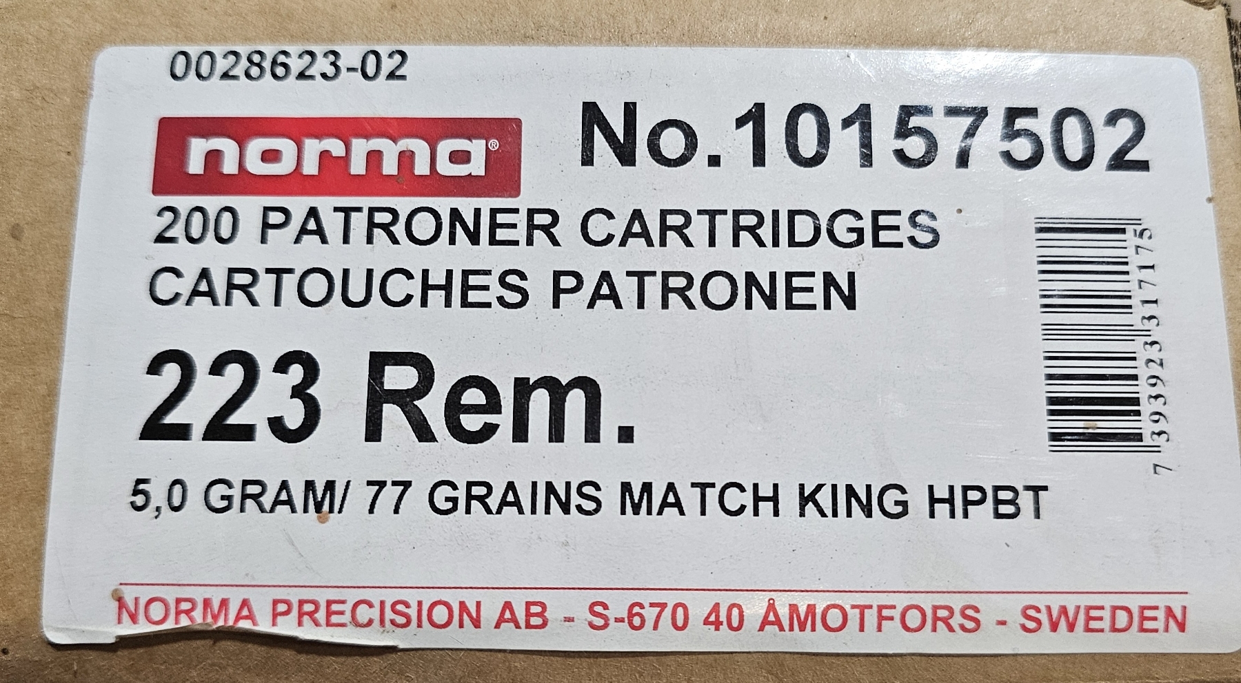 Lot 57 Case of Norma .223 Remington Cartridges (100 Rounds)