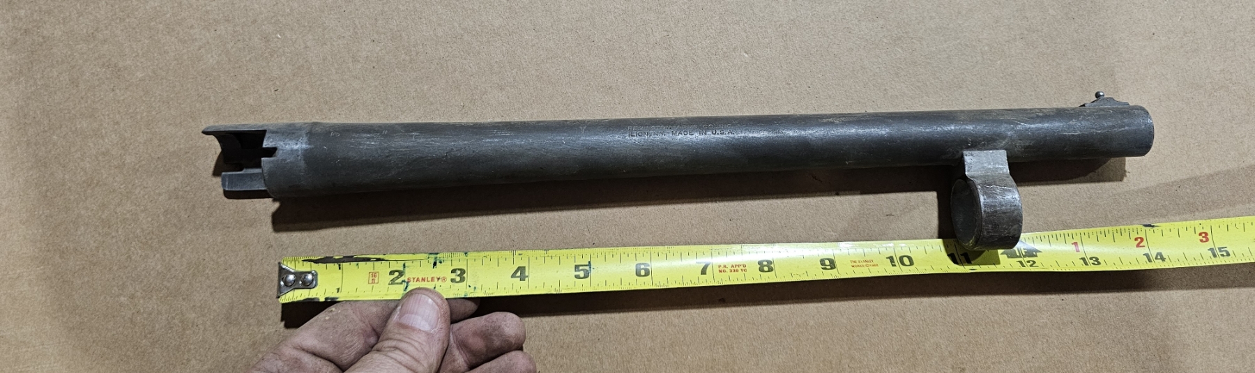 About 14'' long, 2-3/4'' only. Fixed Imp. Cyl. choke.