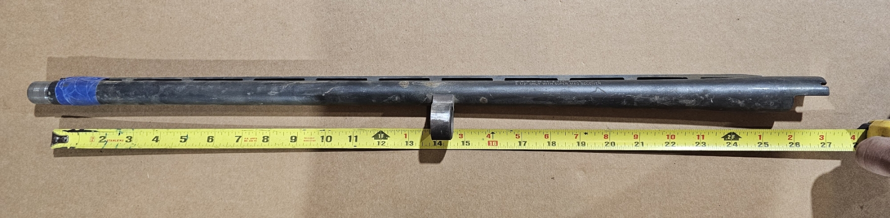 About 25'' long. 3.5'' shells. Cut for Remington chokes. One Mod. choke included.