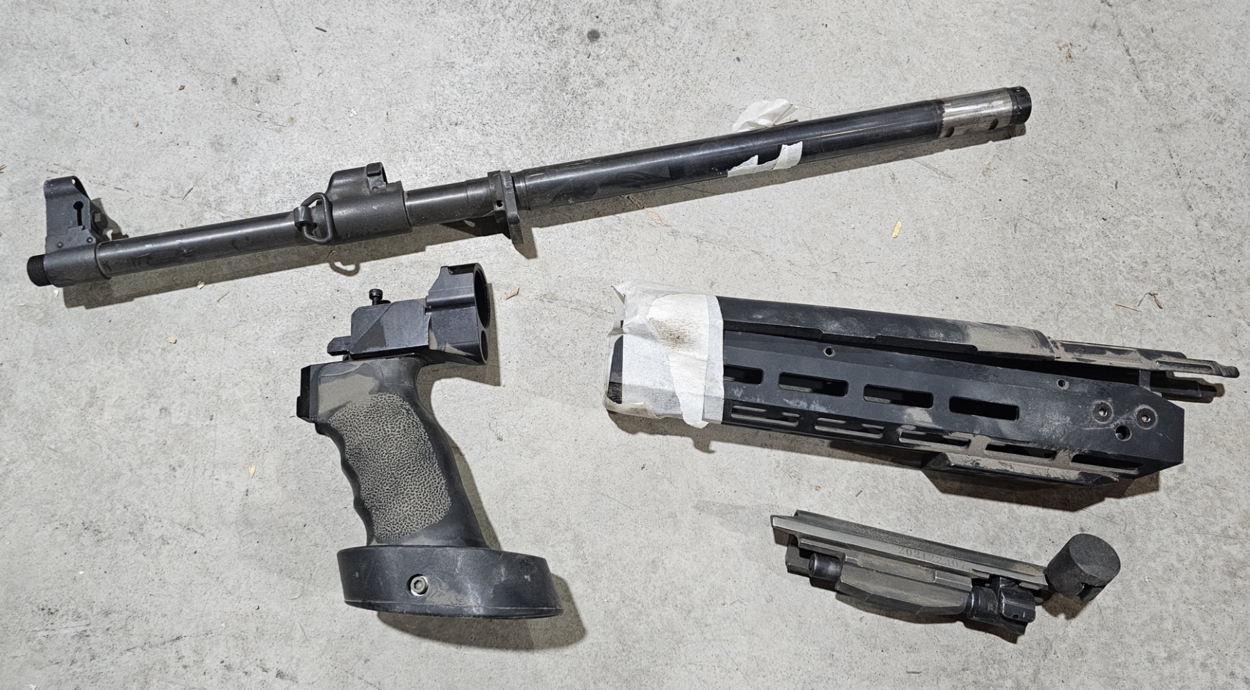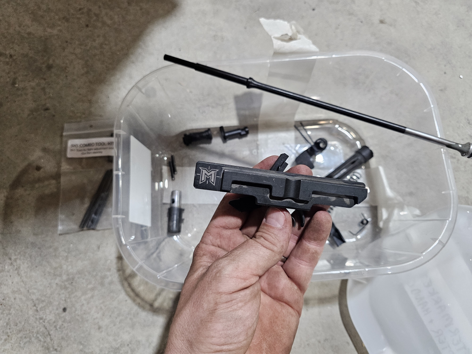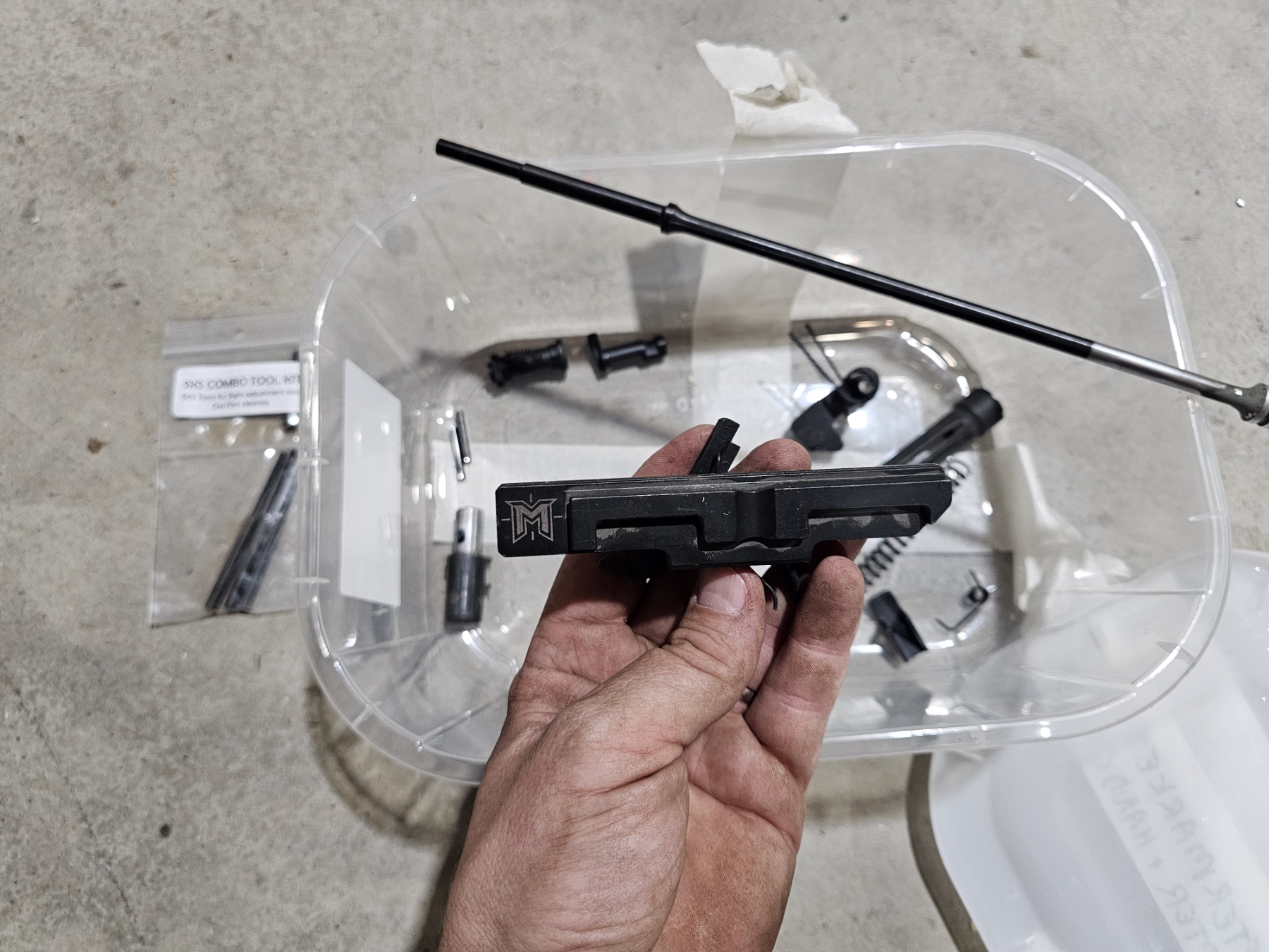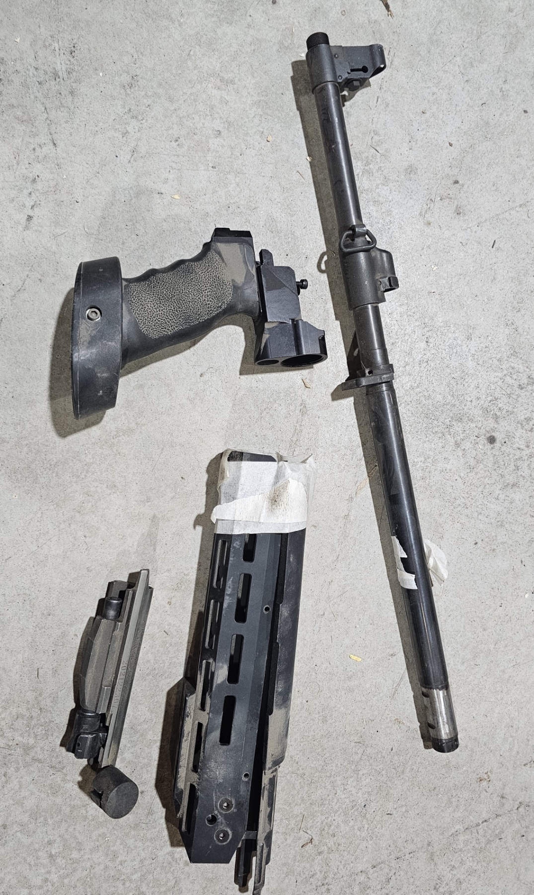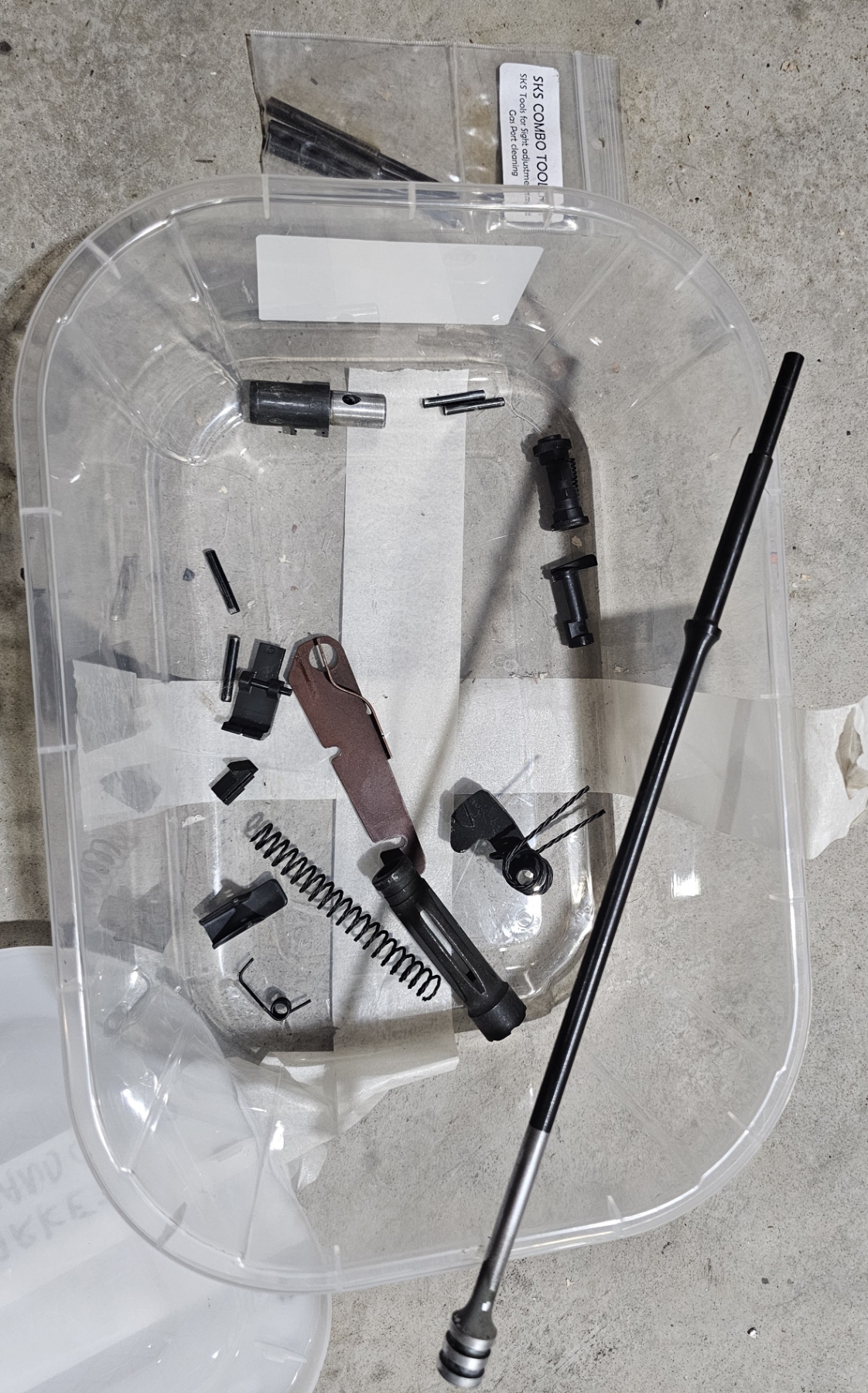 Bolt and carrier, fire control group, spare parts for trigger group, gas piston. Basically everything you need to build the gun except the receiver.