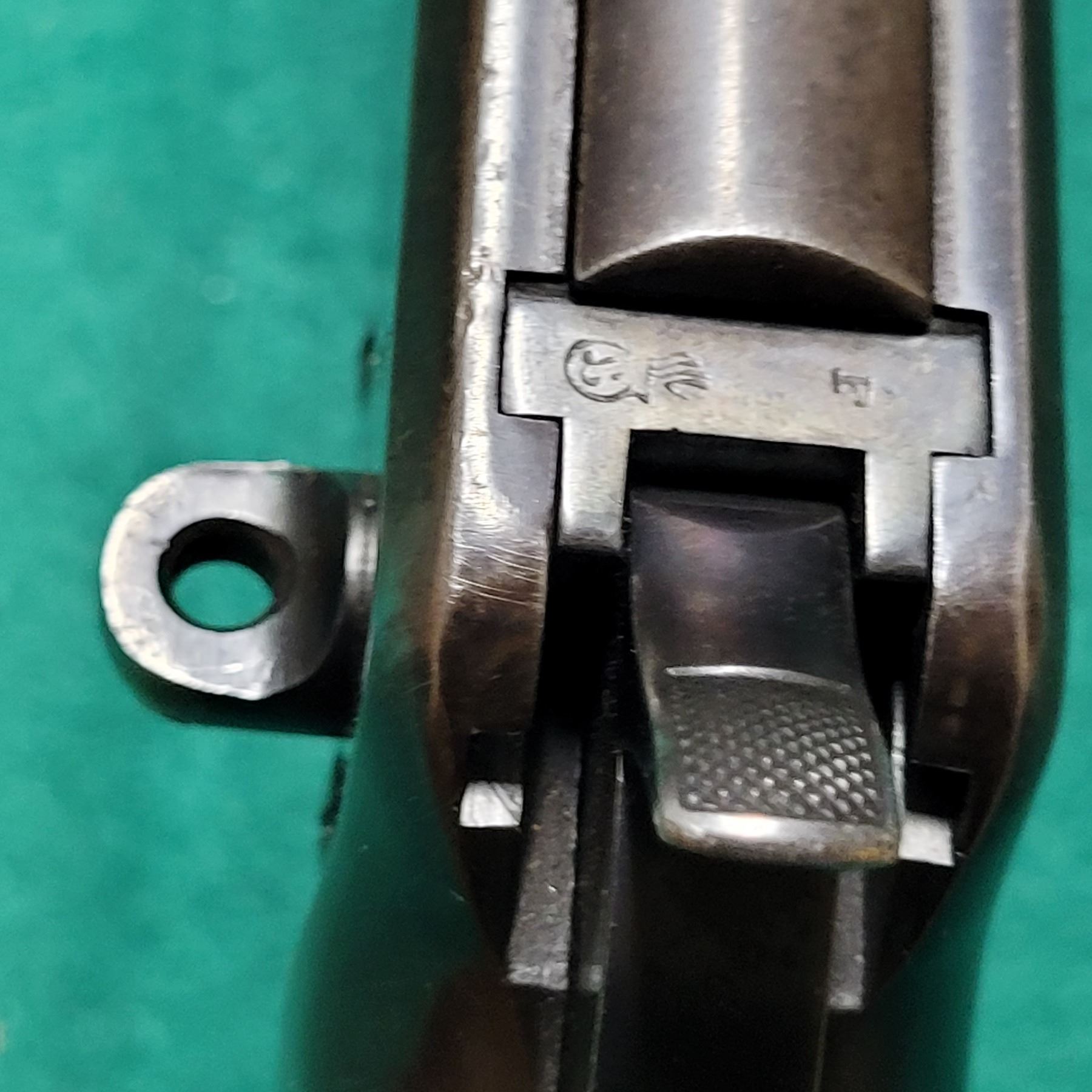 These rifles had Sling Swivels that were in-letted into the side of the stock by the French armorers. The rear ladder sights were stamped with the word Meters. This particular rifle has a standard 94 Carbine ladder sight without the word Meters.